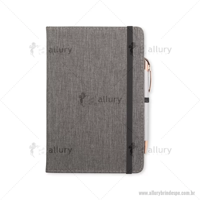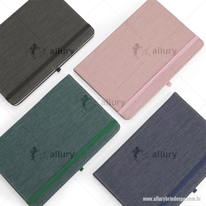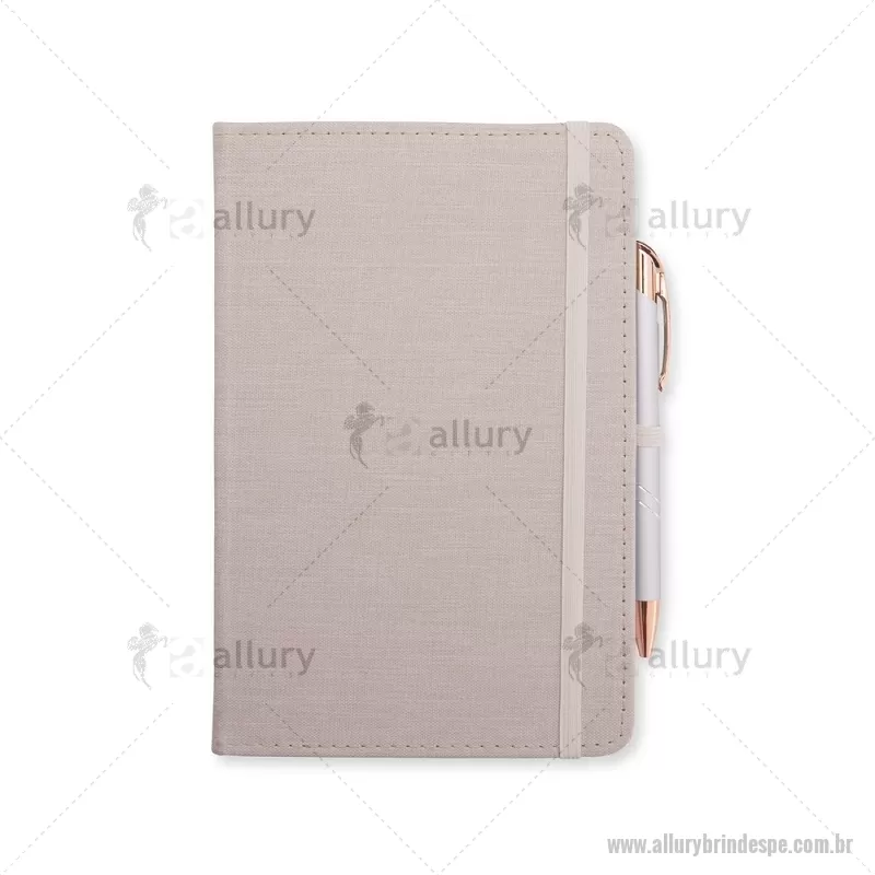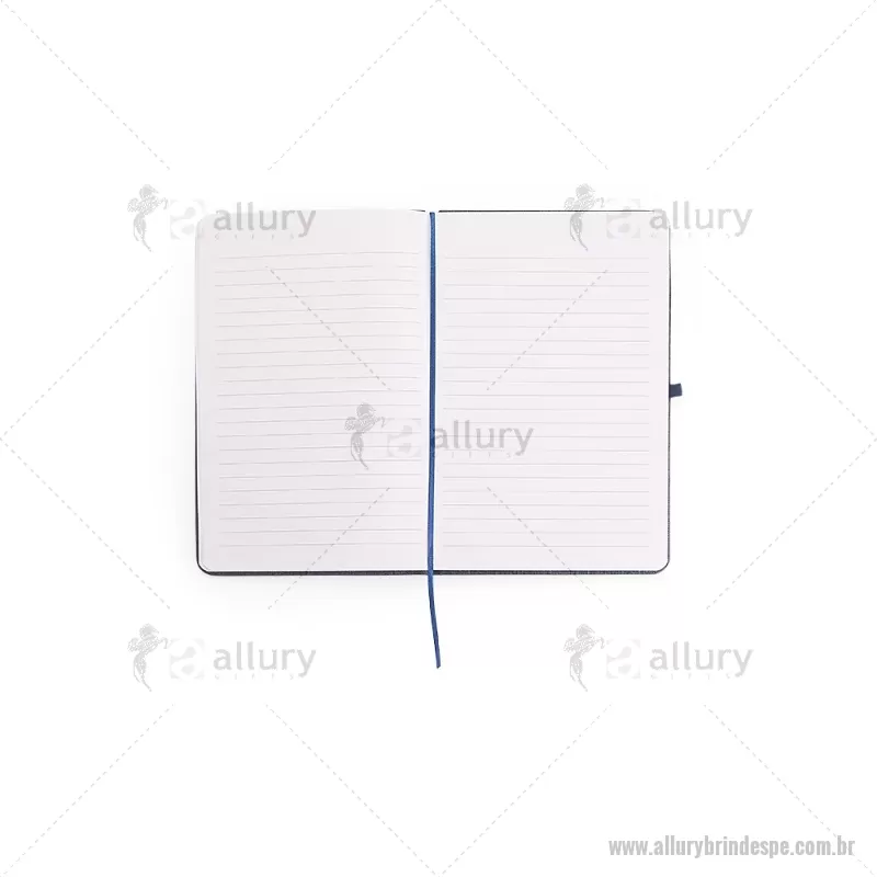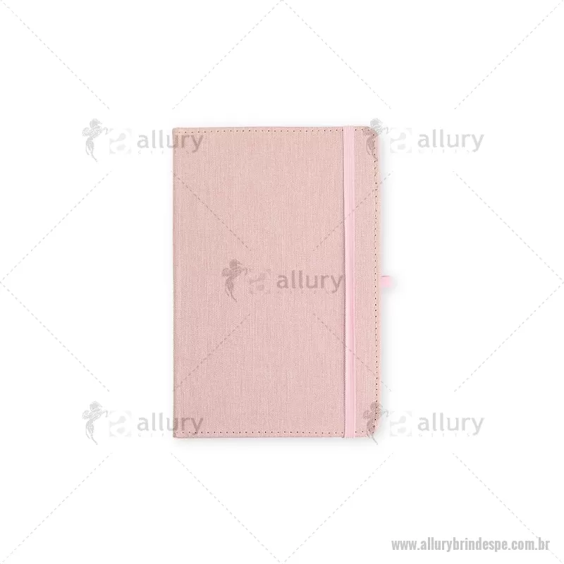Caderneta com capa dura em linho, equipada com elástico para fechamento, marca-páginas em fita de cetim e porta-caneta. Contém aproximadamente 80 folhas pautadas, ideal para anotações do dia a dia. - - ALLPEBLC271
