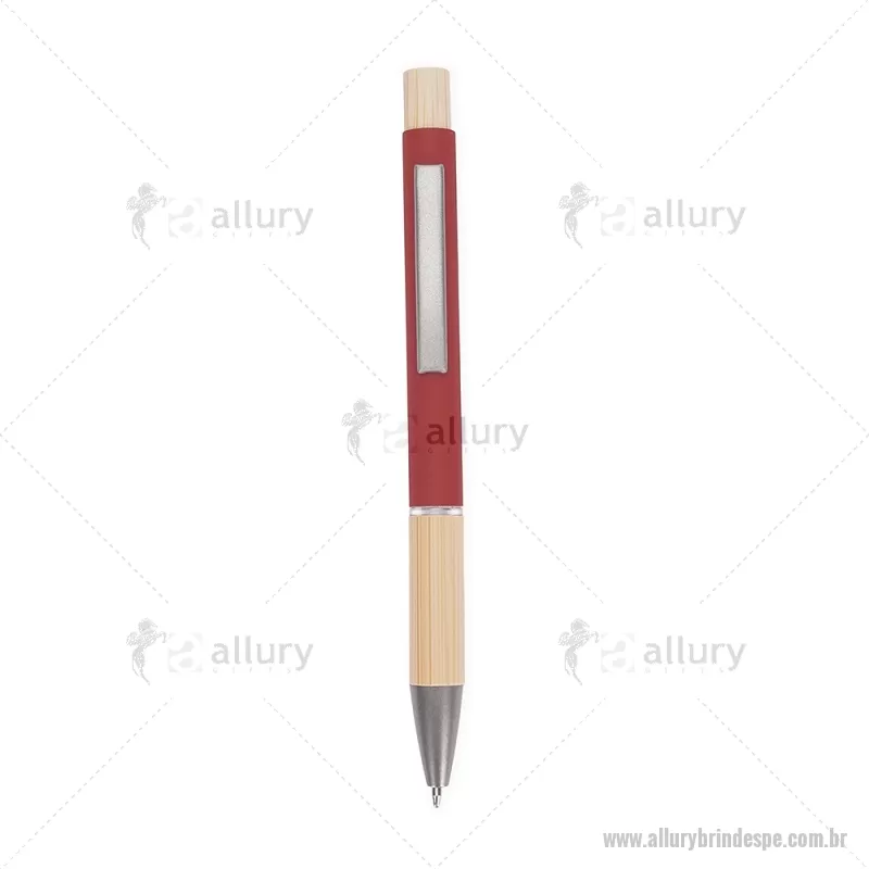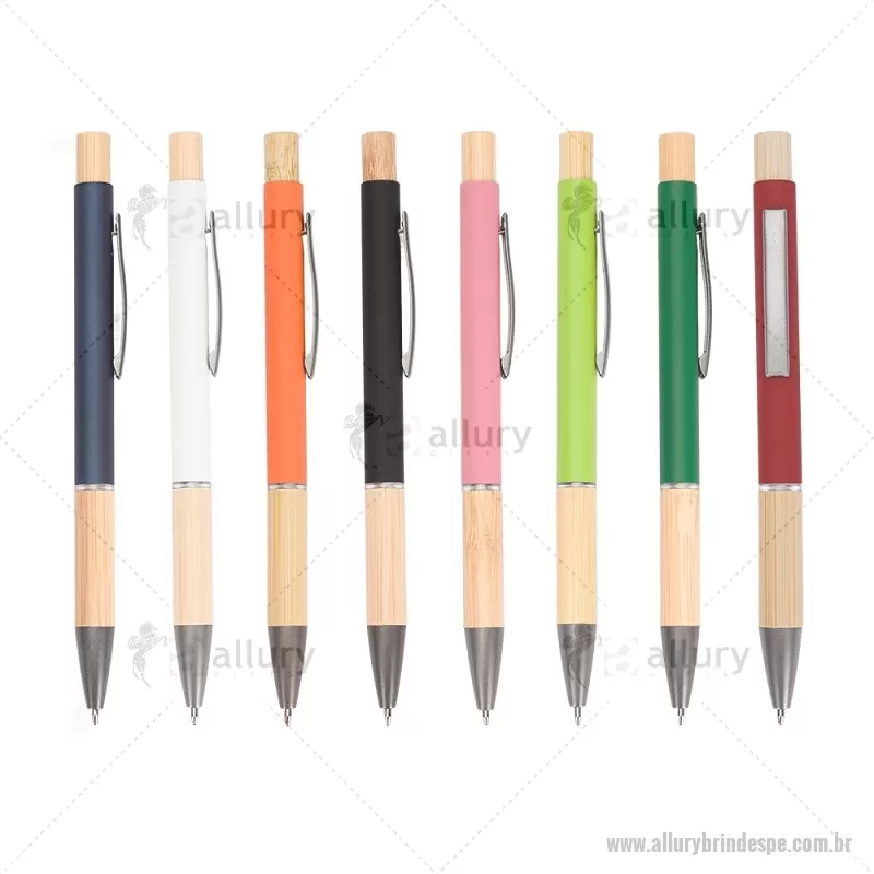 Caneta esferográfica azul 1,0 mm com corpo metálico, detalhes em bambu e acionamento por clique. Leve e confortável, proporciona escrita precisa no dia a dia. - - ALLPECMT296