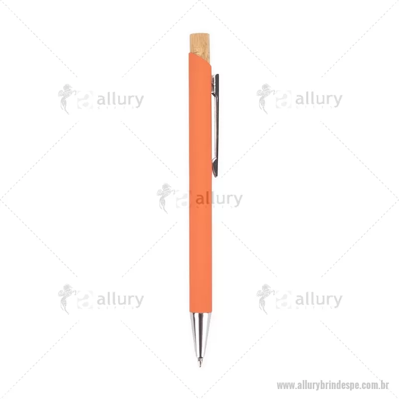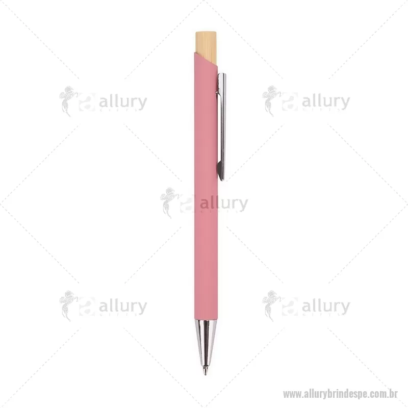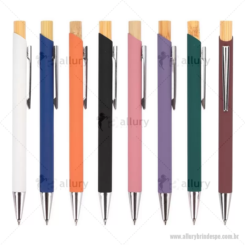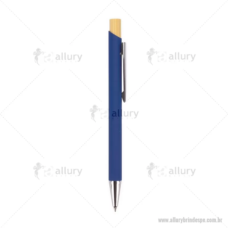 Caneta esferográfica azul 1,0 mm com corpo metálico e acionamento por clique em bambu. Oferece escrita leve, confortável e precisa para o uso diário. - - ALLPECMT297