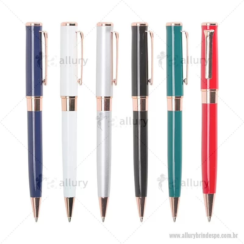 Caneta esferográfica com tinta azul 1,0 mm, acionamento por rotação e corpo totalmente metálico. Seu design oferece escrita suave, confortável e precisa, ideal para uso diário ou profissional. - - ALLPECMT300