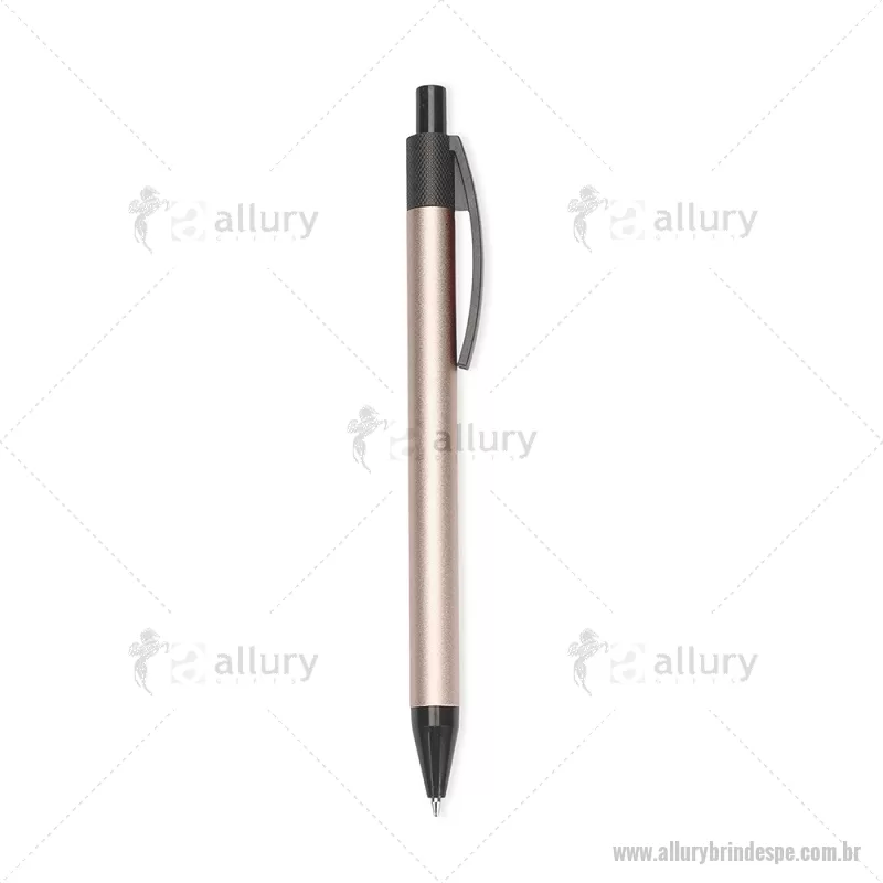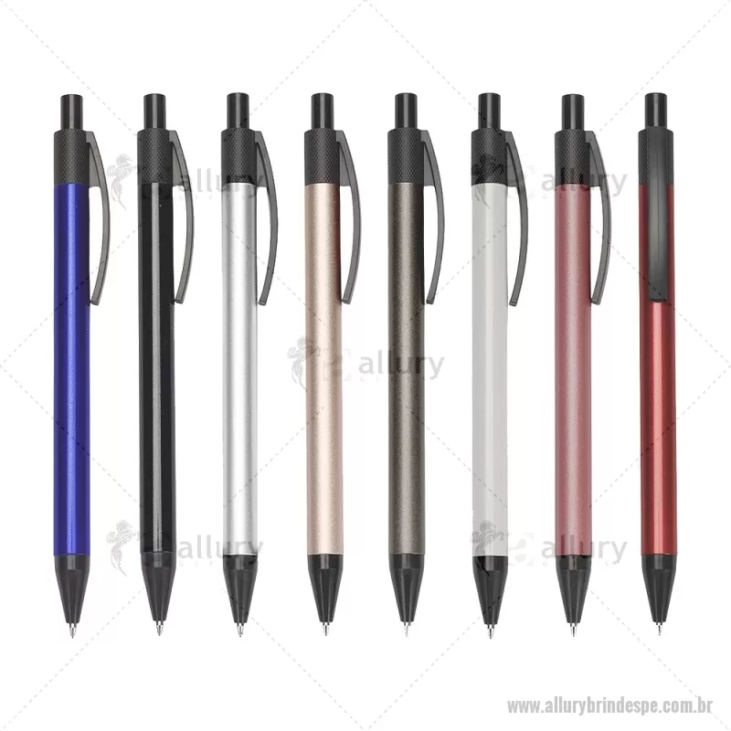 Caneta com corpo em metal, ponteira e clip em plástico, equipada com acionamento por clique. Possui carga esferográfica azul de 1,0 mm, garantindo escrita suave, leve e precisa para o uso diário. - - ALLPECMT301