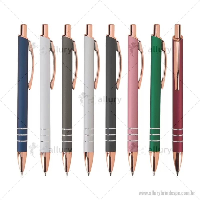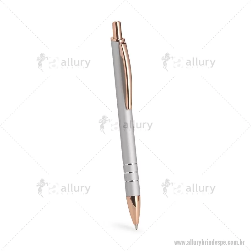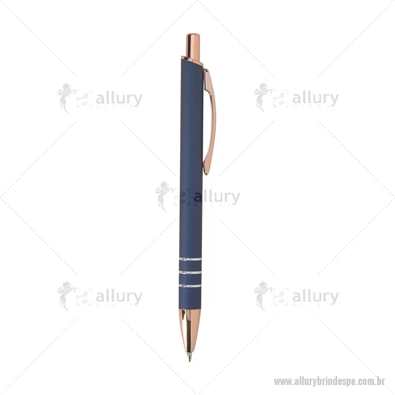 Caneta em metal com acionamento por clique e carga esferográfica azul de 1,0 mm. Leve e confortável, garante escrita precisa e uso prático no dia a dia. - - ALLPECMT303