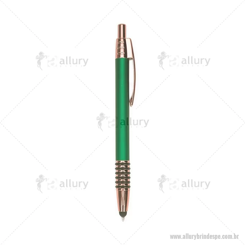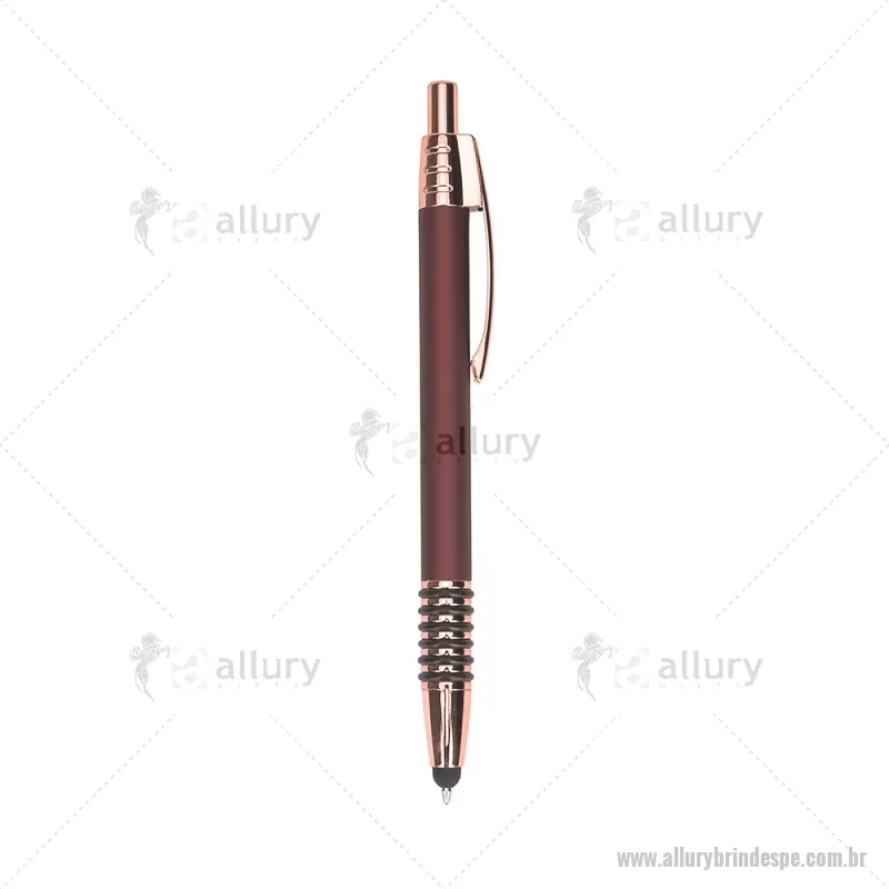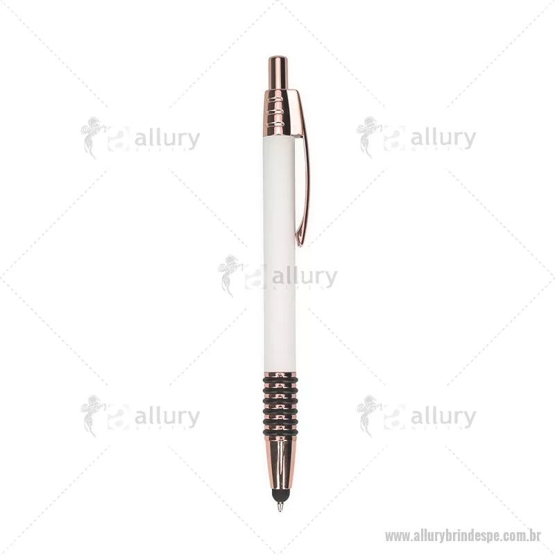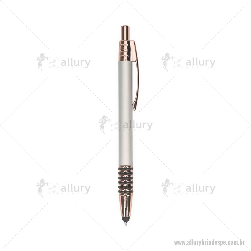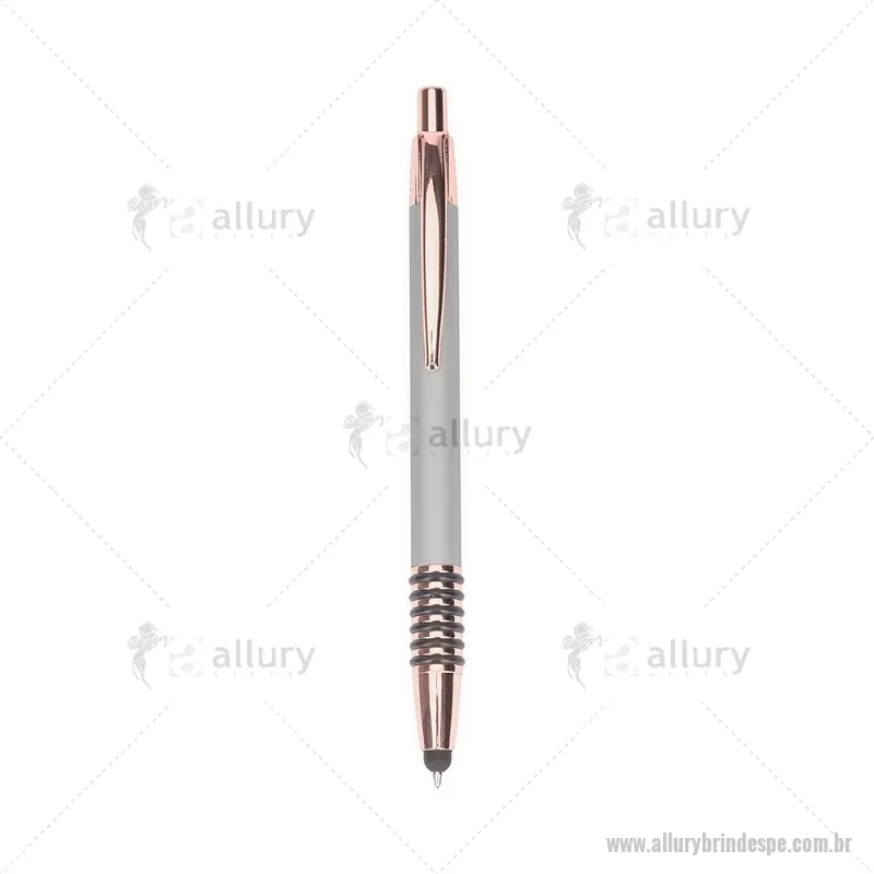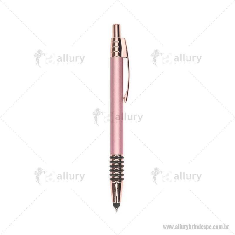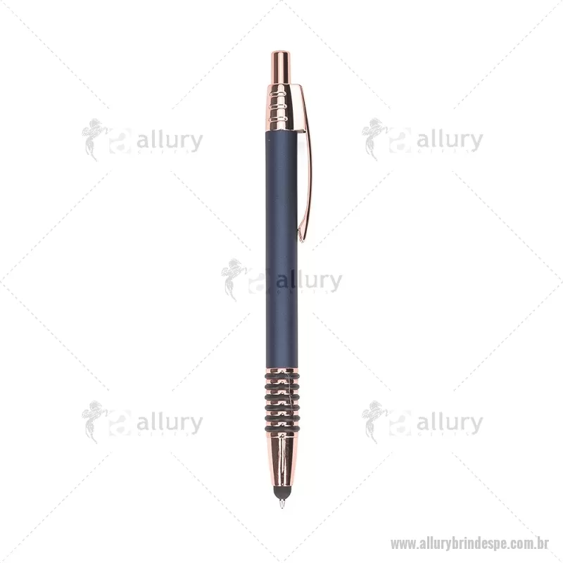 Caneta metálica com detalhes emborrachados no corpo, garantindo maior conforto na escrita. Possui carga esferográfica azul 1,0 mm, acionamento por clique e ponteira touch para uso em telas sensíveis ao toque. Prática e versátil para o dia a dia. - - ALLPECMT298