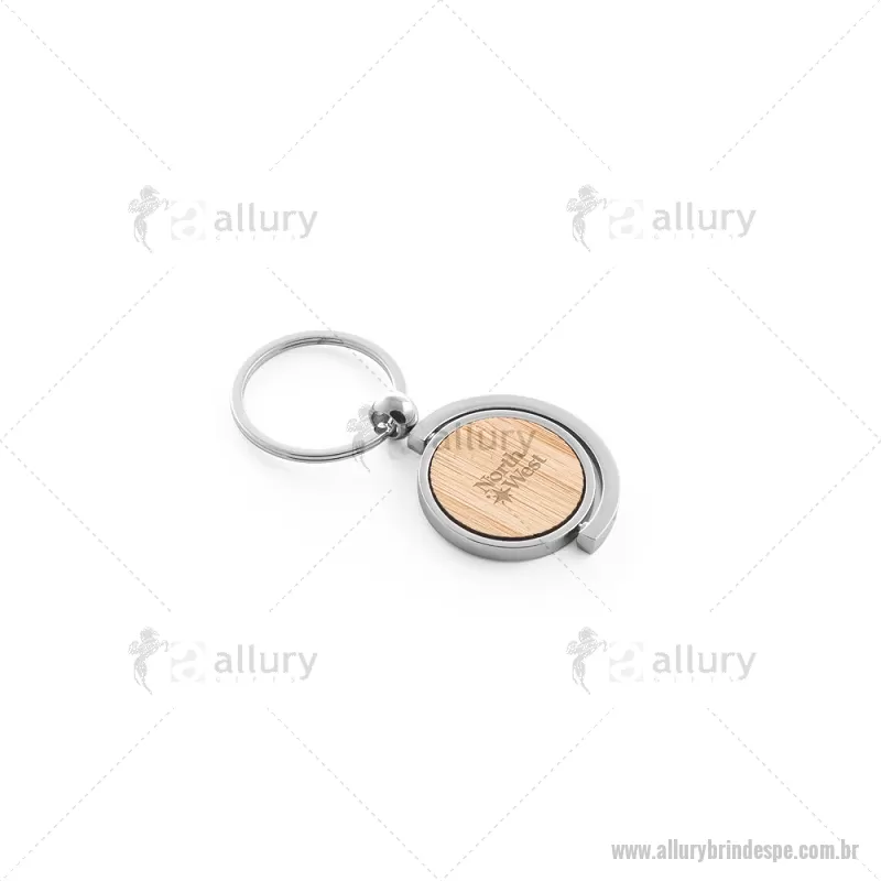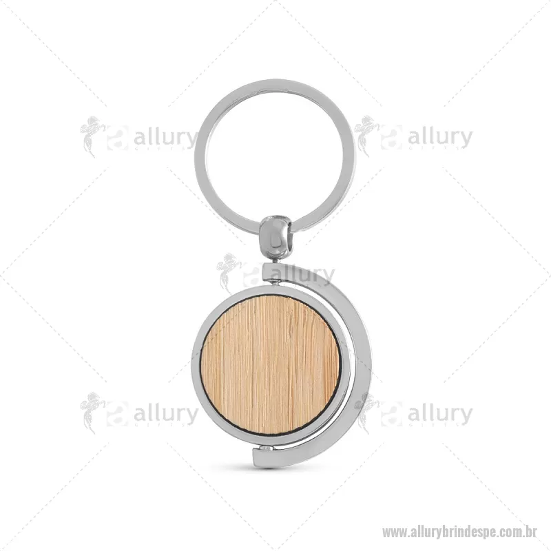 Chaveiro redondo em bambu com revestimento em metal. Fornecido com bolsa em cartão kraft. 36 x 40 x 4 mm - - ALLPECHV198