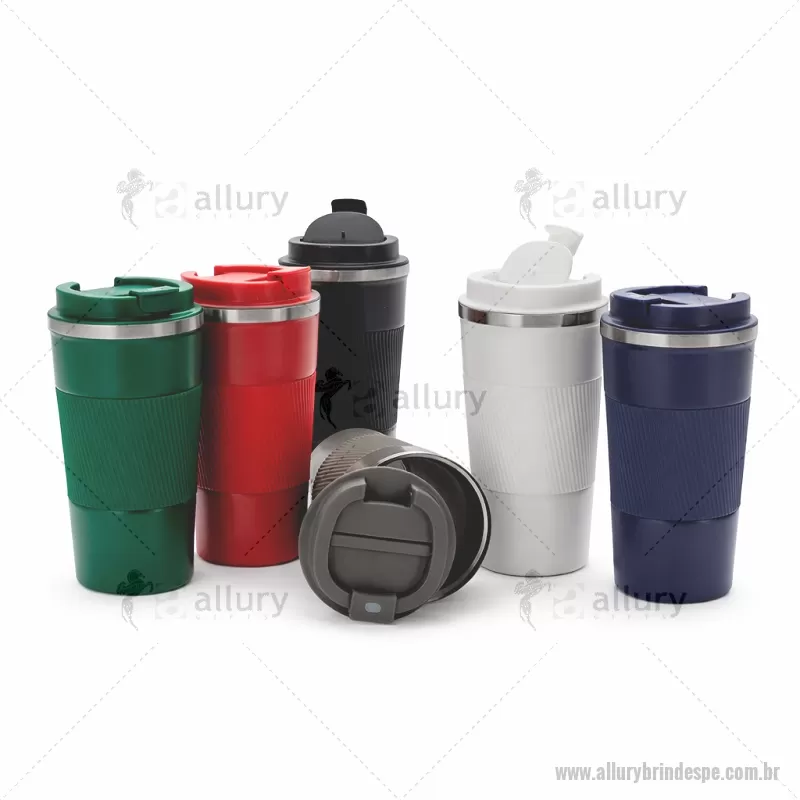 Copo térmico de 500ml fabricado em aço inox 304, com acabamento em pintura eletrostática que garante maior durabilidade e resistência. Sua estrutura de parede dupla com isolamento a vácuo mantém a temperatura das bebidas por mais tempo. Possui base emborrachada que proporciona maior estabilidade, além de tampa plástica rosqueável com trava de segurança no bocal. Acompanha luva de silicone removível, oferecendo mais conforto e segurança no manuseio. - - ALLPECPO155