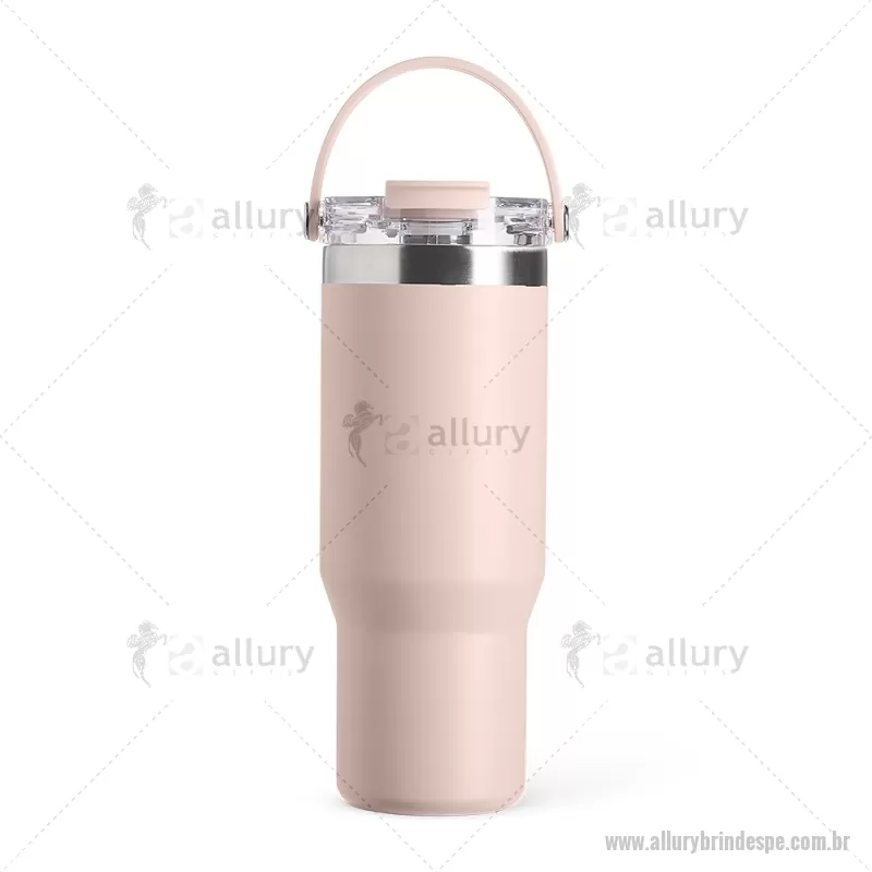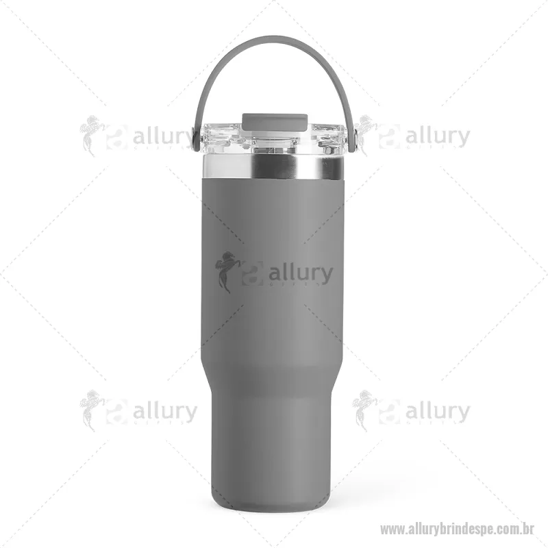 Copo térmico de 900 ml em aço inox com parede dupla, ideal para manter a temperatura de bebidas por mais tempo. Possui tampa plástica rosqueável com vedação a vácuo, proteção para o bocal, bico flip com canudo interno removível e alça para transporte. Conta com acabamento em pintura eletrostática, garantindo durabilidade e visual sofisticado. - - ALLPECPO146