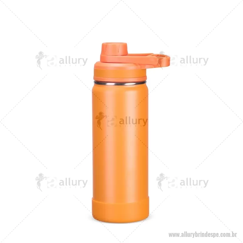 Garrafa Térmica 550ml inox com pintura eletrostática. Mantém a temperatura de líquidos por mais tempo graças à estrutura de parede dupla e ao isolamento a vácuo. Possui tampa plástica rosqueável com protetor de bocal e alça fixa. Acompanha protetor removível em silicone para a base. Altura : 22,5 cm x Largura : 7,4 cm x Circunferência : 23,3 cm Tamanho total aproximado (CxL): Diâmetro: 5,5 cm Peso aproximado (g): 290 - - ALLPEGAT172