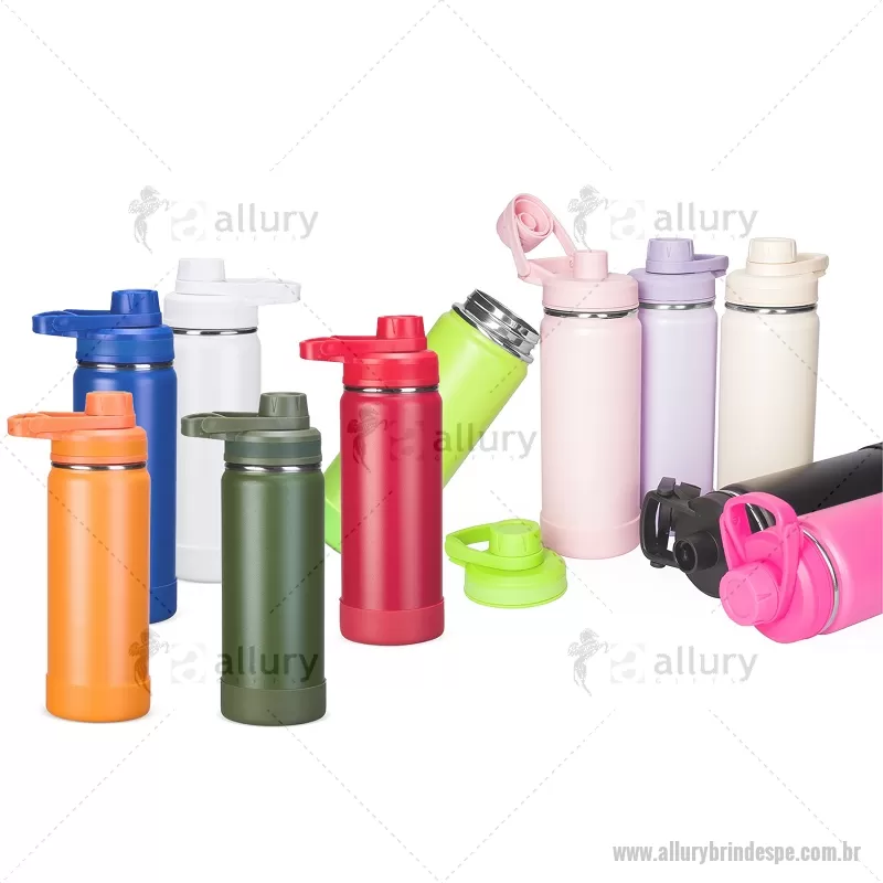Garrafa Térmica 550ml inox com pintura eletrostática. Mantém a temperatura de líquidos por mais tempo graças à estrutura de parede dupla e ao isolamento a vácuo. Possui tampa plástica rosqueável com protetor de bocal e alça fixa. Acompanha protetor removível em silicone para a base. Altura : 22,5 cm x Largura : 7,4 cm x Circunferência : 23,3 cm Tamanho total aproximado (CxL): Diâmetro: 5,5 cm Peso aproximado (g): 290 - - ALLPEGAT172