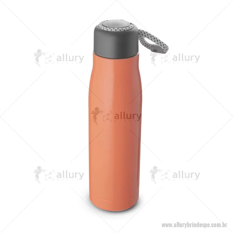Garrafa térmica em aço inox 550ml brilhoso com parede dupla isolada a vácuo, com alça em corda para facilitar o transporte. Tampa plástica rosqueável e anel de silicone para vedação. Conserva líquidos : ??8 horas ??12 horas Dimensão do produto: 25xø7cm (AxøD) Peso do produto: 0,252kg - - ALLPEGAT101