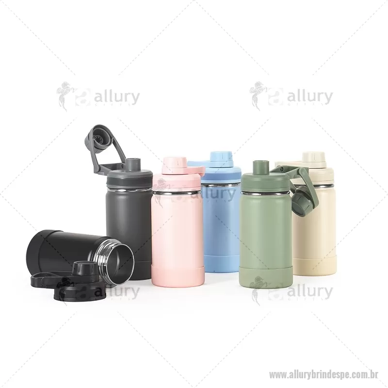 Garrafa Térmica 350ml Descrição: Garrafa térmica em inox, pintura eletrostática e capacidade para até 350ml. Conta com estrutura de parede dupla e vedação a vácuo, permitindo conservar a temperatura de líquidos por mais tempo. Possui tampa rosqueável com protetor para o bocal e alça fixa para facilitar o transporte. Acompanha protetor para a base em silicone. Altura : 18,2 cm x Largura : 10 cm x Circunferência : 23 cm Peso aproximado (g): 238 - - ALLPEGAT158