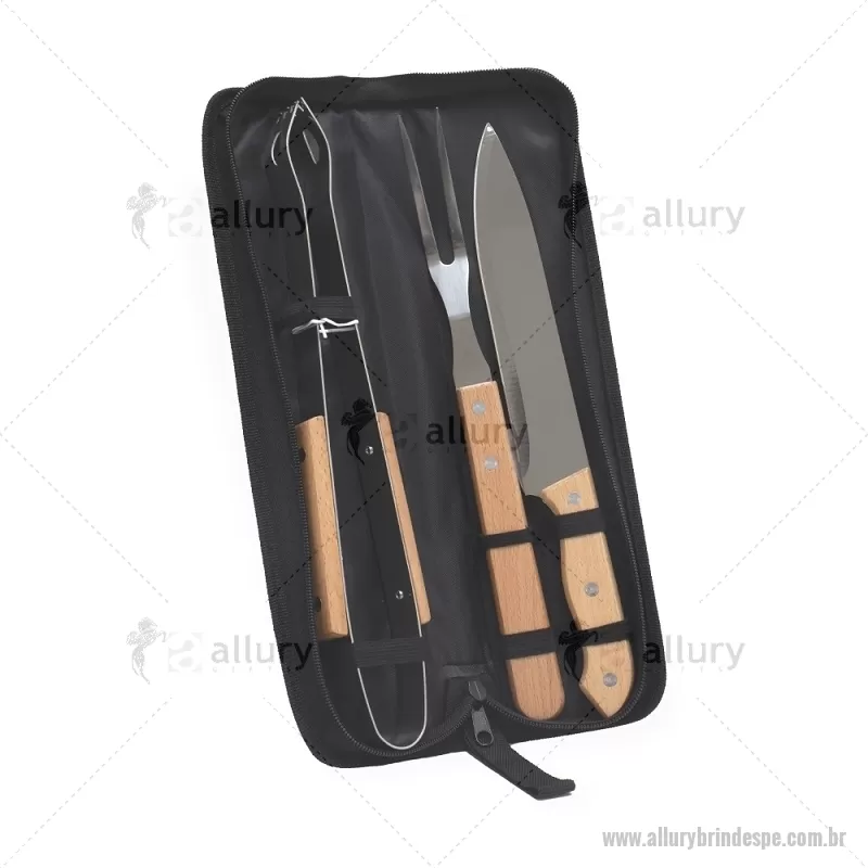 Kit Churrasco 3 Peças O kit essencial para um churrasco perfeito! Composto por uma faca de 8 polegadas, garfo e pegador, este kit combina praticidade e qualidade em um só conjunto. As peças, feitas em aço inoxidável, possuem pegadores de madeira que conferem um toque rústico e elegante. Acomodadas em um estojo de nylon com alça, o kit é fácil de transportar para qualquer lugar. E para torná-lo ainda mais especial, acompanha uma plaquinha metálica personalizável com verso autoadesivo, garantindo exclusividade ao conjunto. Largura : 8,9 cm x Profundidade : 4,1 cm x Comprimento : 37,6 cm Características Técnicas Faca - Medidas totais (C x L x P): 32,9 cm x 3,7 cm x 1,5 cm Garfo - Medidas totais (C x L x P): 33,1 cm x 2,4 cm x 1,5 cm Pegador - Medidas totais (C x P): 35 cm x 0,9 cm Plaquinha Estojo - Medidas totais (C x L): 4,7 cm x 8,2 cm - - ALLPEKCH087