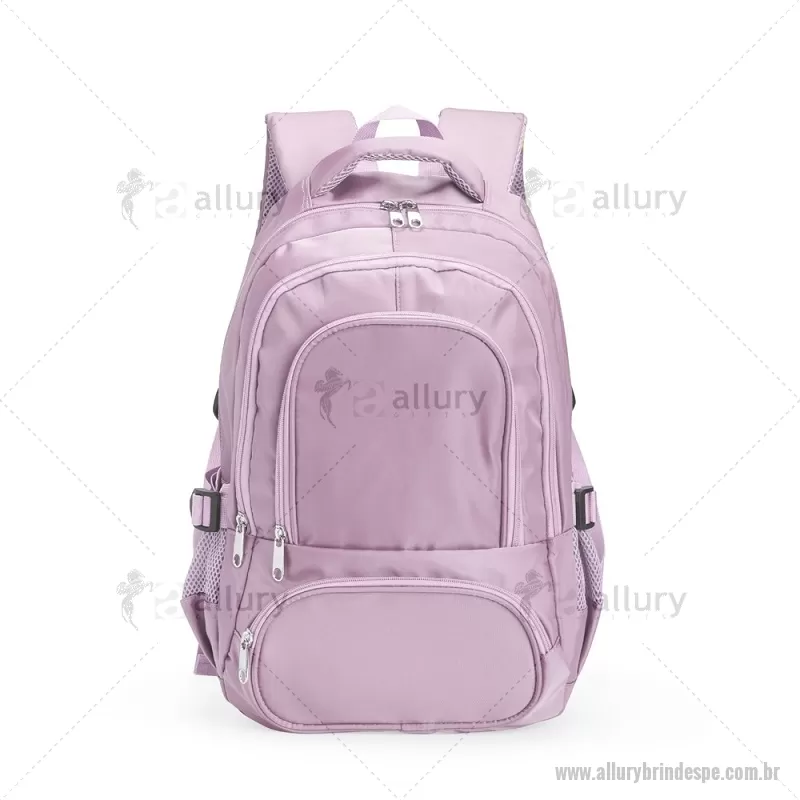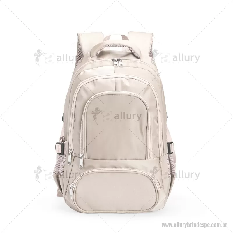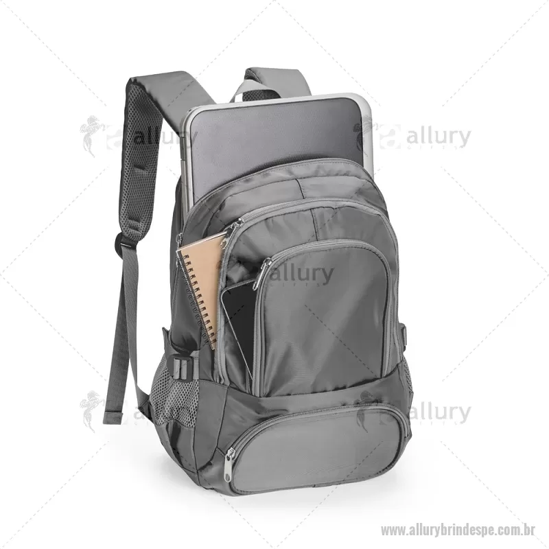 Mochila Poliéster 17 Litros Descrição: Mochila feita em poliéster impermeável com capacidade de até 17 litros. Possui compartimento interno que inclui um pequeno bolso com zíper e divisória acolchoada para notebooks de até 14 polegadas. Conta ainda com três bolsos externos em tamanhos diferentes e mais dois bolsos laterais em tela com regulagem. As alças de costas e de mão possuem revestimento espumado. Altura : 37 cm x Largura : 31 cm x Profundidade : 15 cm Peso aproximado (g): 463 - - ALLPEMC246