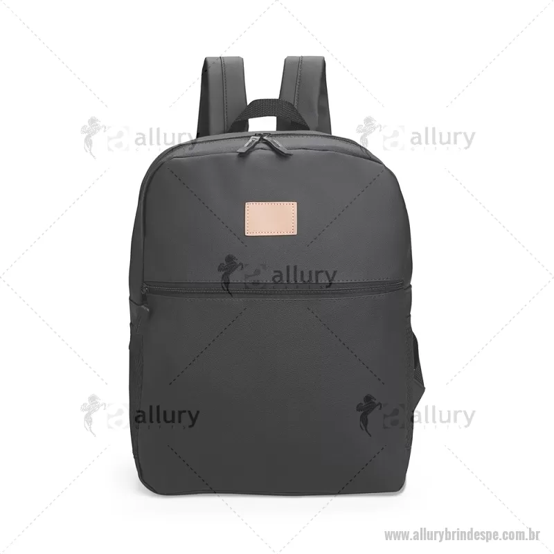 Mochila em couro sintético impermeável, com fechamento em zíper e capacidade de até 20 litros. Possui compartimento interno com divisória para notebook de até 14”, além de bolso frontal com plaquinha decorativa e dois bolsos laterais em tela de nylon. Prática e ideal para o uso diário. - - ALLPEMC249