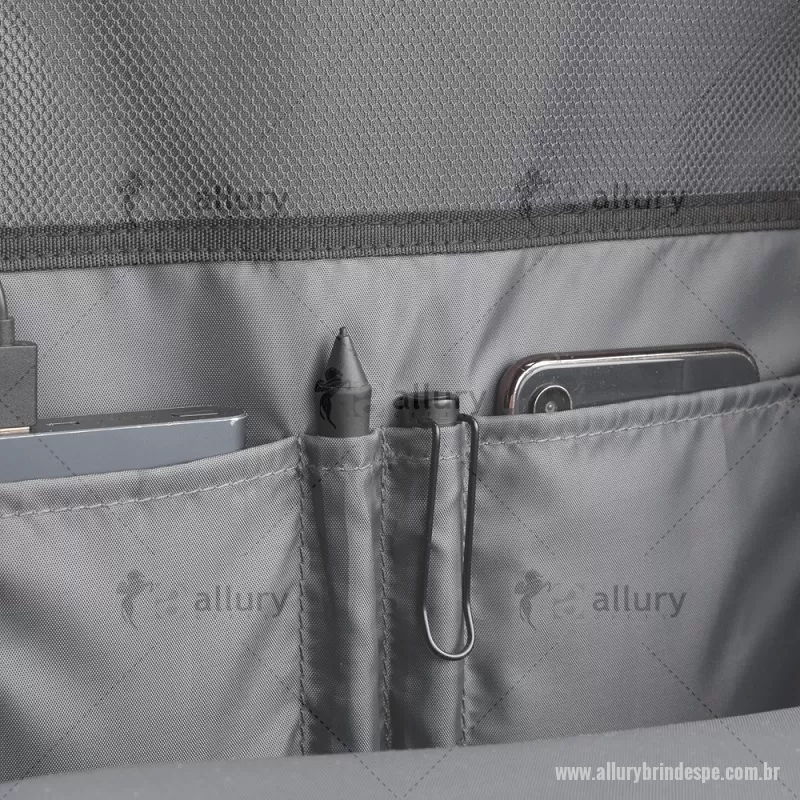 Mochila para Notebook de até 15,6”, produzida com poliéster acolchoado, alças de ombro colchoadas, interior com divisórias com zíper para acomodar pequenos objetos, bolso frontal com zíper e na parte das costas uma divisória atrás do engate para mala de viagem, porta USB na lateral. - - ALLPEMC222