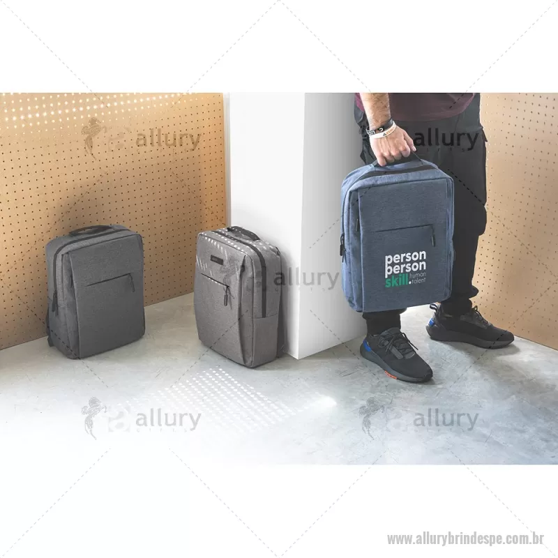 Mochila para notebook 15.6" em 300D de alta densidade com placa para personalização 15 L Mochila para notebook em 300D de alta densidade. Compartimento principal forrado, com divisória almofadada para computador até 15.6" e diversos bolsos interiores. Contém ainda bolso frontal e 2 bolsos laterais. Parte posterior e alças almofadadas. Placa metálica removível com imã para fácil gravação. Capacidade até 15 L. Medidas: 300 x 420 x 120 mm Peso do Produto (g.): 0,5 kg - - ALLPEMC247