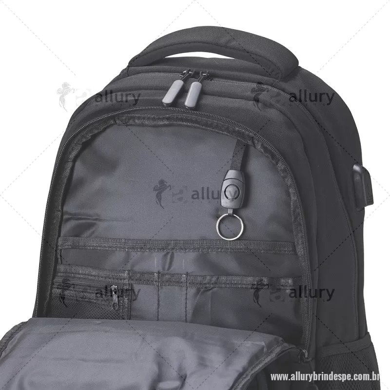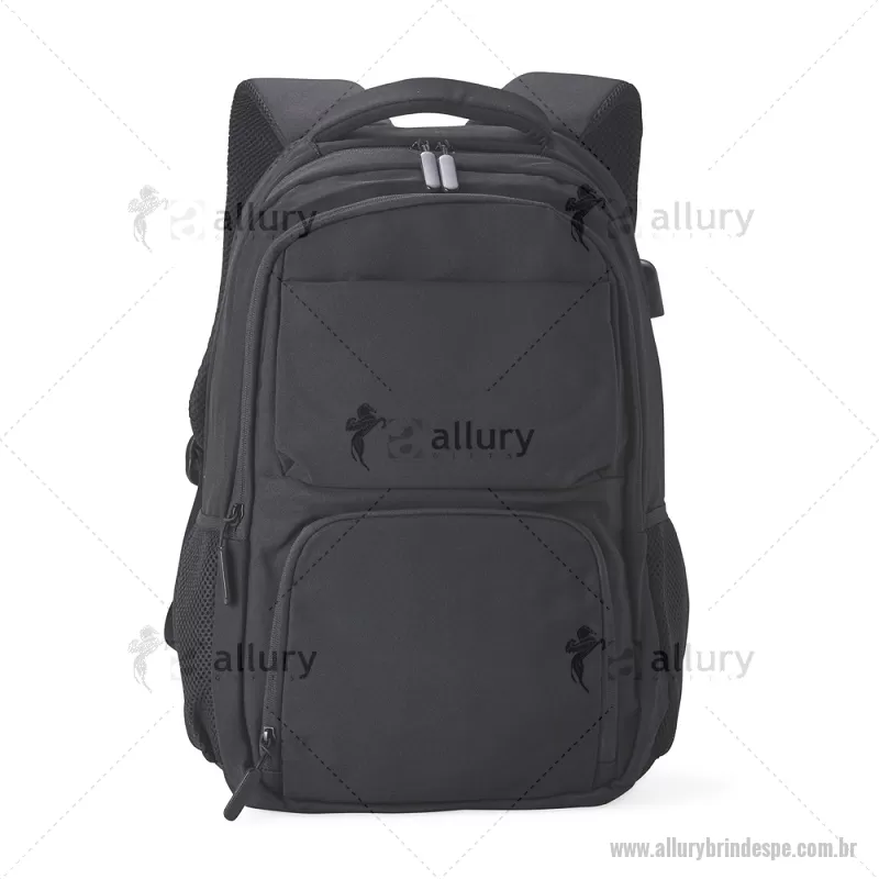 Mochila de Poliéster USB 28 litros com seis compartimentos, sendo o principal com bolso para notebook 15,6 e tablet 12,4. Com divisórias internas para acessórios e porta chave, a mochila possui adaptador USB externo, bolsos laterais telados, duas alças de mãos, área costada e alças para as costas com revestimento espumado. Altura : 43 cm x Largura : 31 cm x Profundidade : 15,5 cm Peso aproximado (g): 786 - - ALLPEMC248