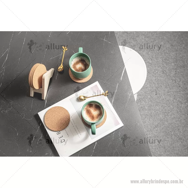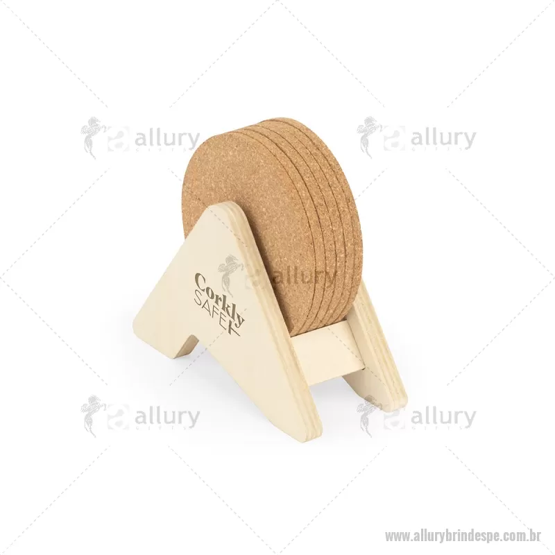 Porta copos em madeira com 6 bases para copos em cortiça. Desfrute da sua bebida evitando marcas na mesa. Certificação EU Food Grade. A cor e o resultado da impressão nos materiais naturais pode variar entre produtos. medidas: 140 x 92 x 78 mm Peso do Produto (g.): 80 - - ALLPEPCO010