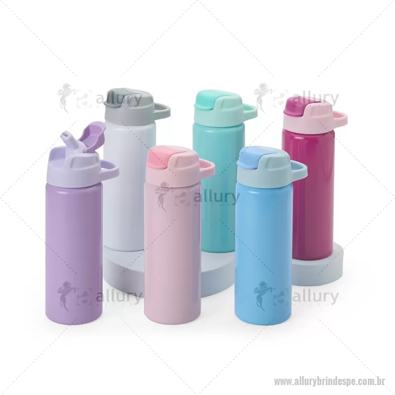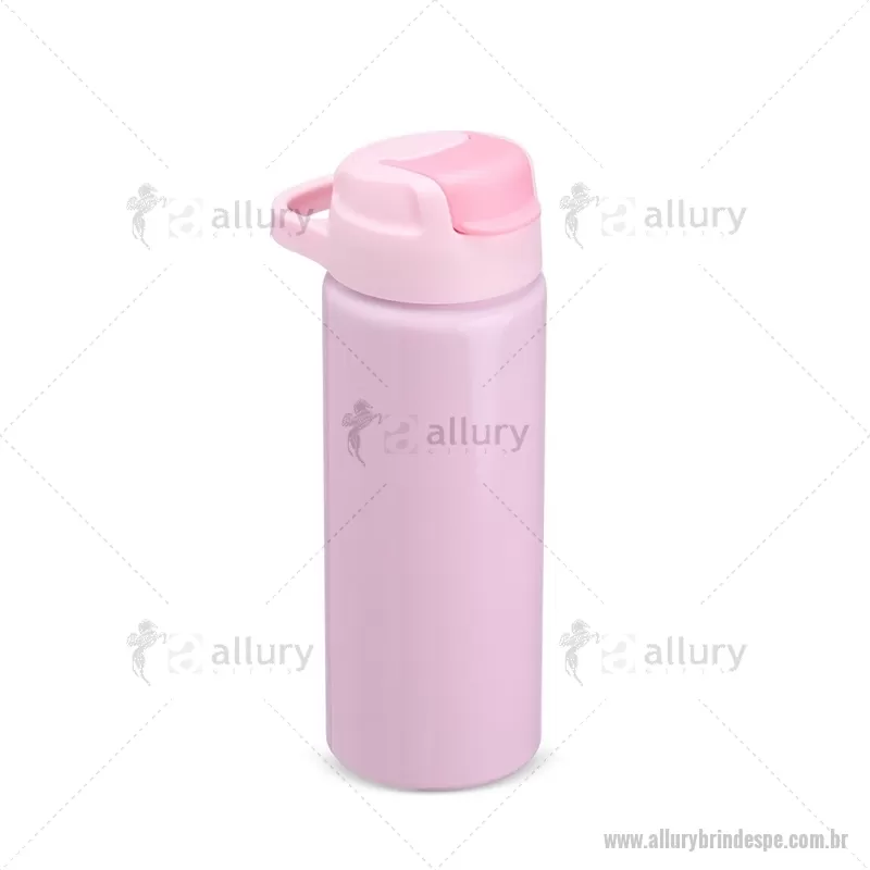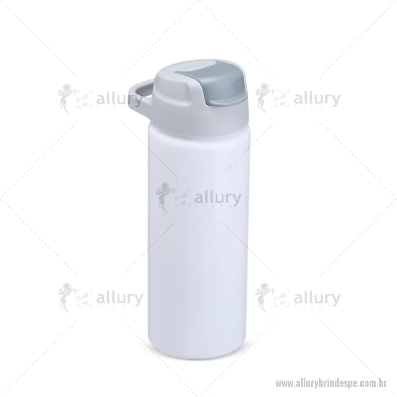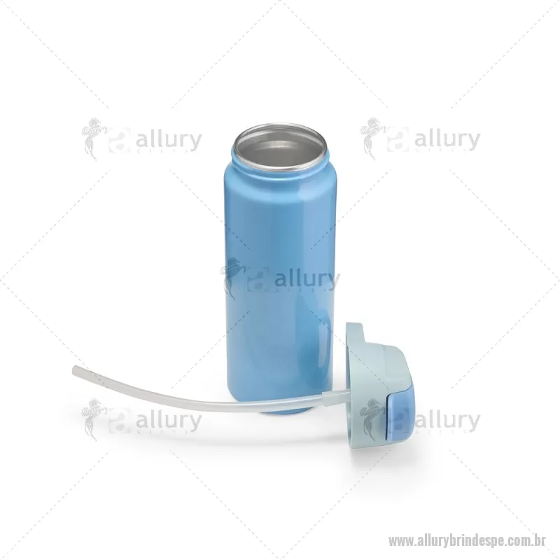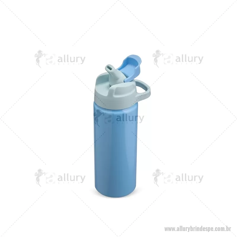 Squeeze de alumínio com capacidade máxima de 600ml. Possui tampa rosqueável em plástico com alça para transporte, protetor de bocal, bico flip top e canudo interno em plástico. Altura : 20,5 cm x Largura : 7 cm x Circunferência : 22 cm Peso aproximado (g): 117 - - ALLPESQM087