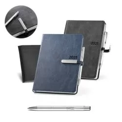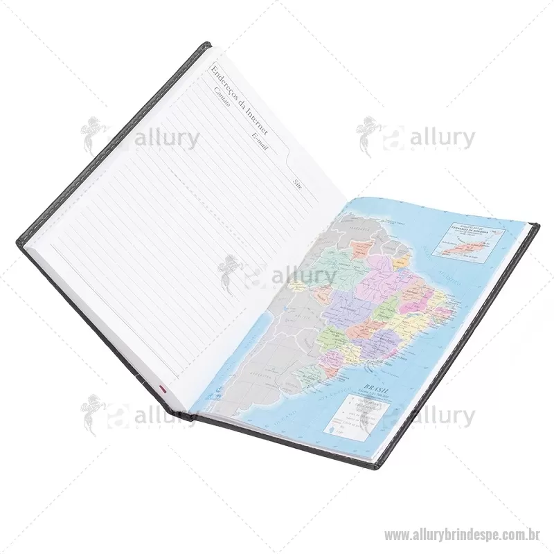 Agenda diária 2025 de couro sintético. Contém fita de cetim marca página, dados pessoais, calendário de 2024 à 2026, mapa do Brasil, mapa-múndi, índice telefônico e planejamento. Altura : 20 cm x Largura : 14,7 cm x Espessura : 2,2 cm Peso aproximado (g): 381 - - ALLPEAGE003