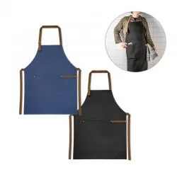 Avental em algodão e poliéster (150 g/m²) com fitas de ajuste e com 2 bolsos frontais. Medidas do produto: 65 x 90 cm | Bolso int.: 8,0 x 14 cm | Bolso ext.: 25 x 16 cm.