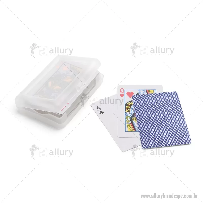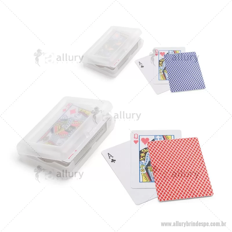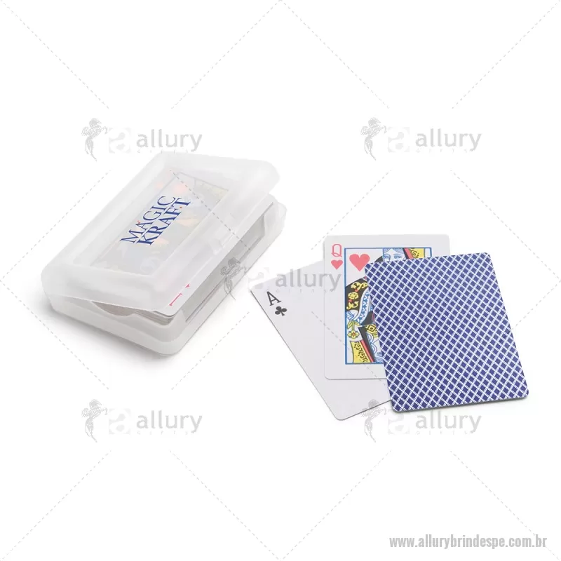 Baralho de 54 cartas em papel plastificado. Fornecido numa caixa rígida / estojo em PP. Medidas: 100 x 70 x 20 mm Peso do Produto (g.): 94 - - ALLPEJOG010