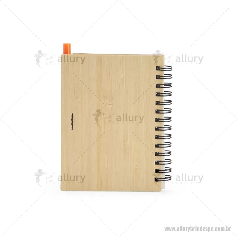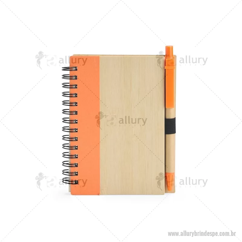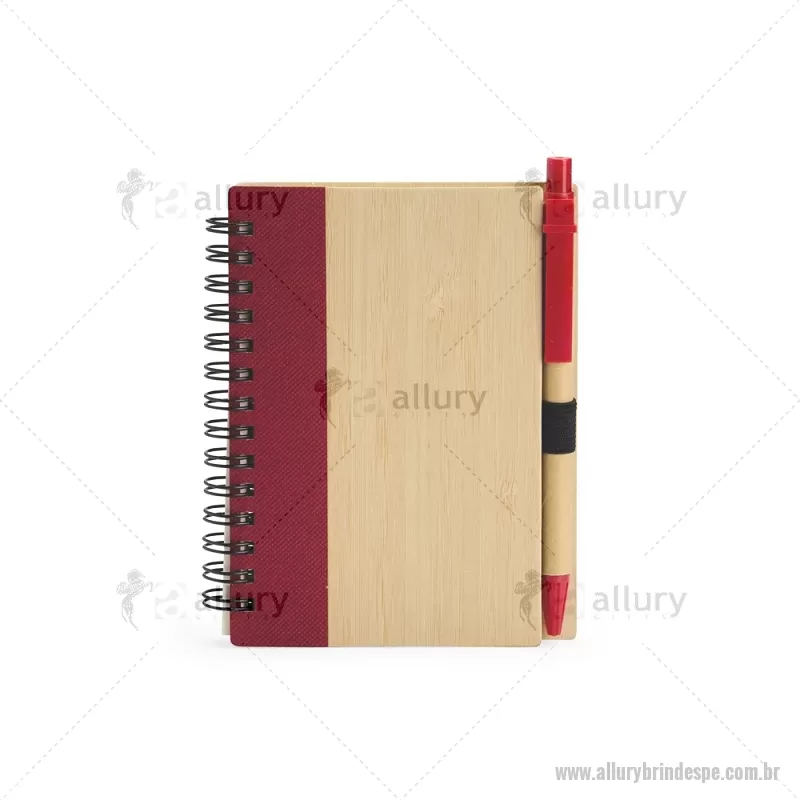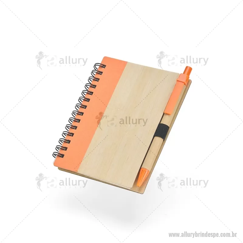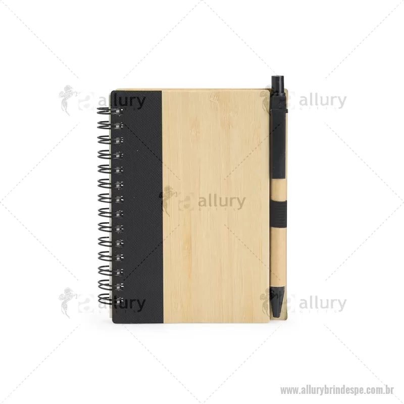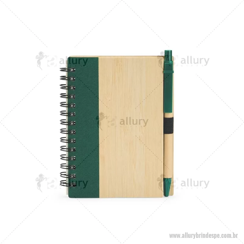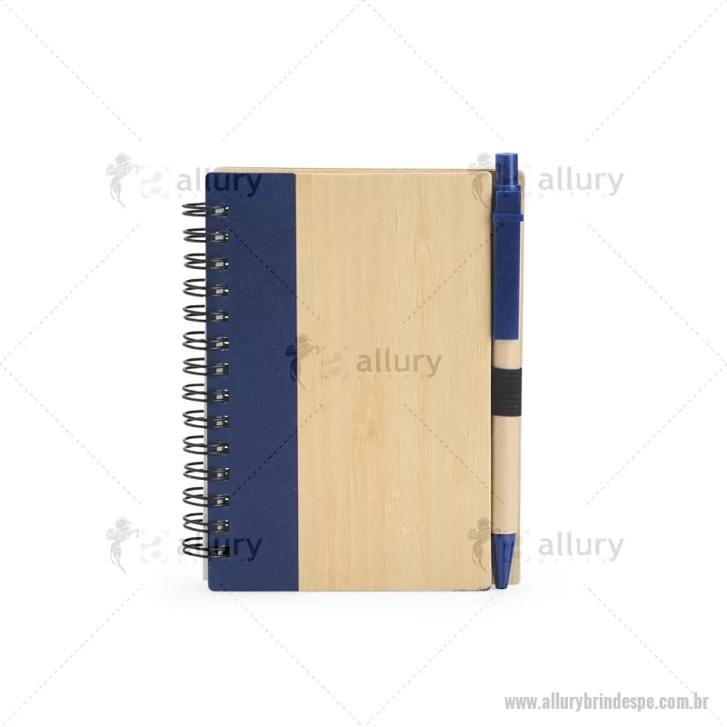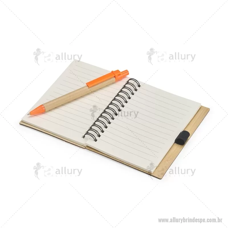 Caderno Ecológico com Caneta Descrição: Um caderno feito para quem deseja anotar ideias e projetos sem abandonar a preocupação com o meio ambiente. Com capa feita em casca de bambu e faixa vertical colorida, ele conta também com encadernação Wire-O e aproximadamente 70 folhas amareladas pautadas. Além disso, o caderno acompanha uma caneta esferográfica de carga azul de 0,8 mm com corpo em papelão e clip, acionamento em clique e ponteira em plástico. A capa contém um elástico para abrigar a caneta junto ao caderno. Largura : 10,5 cm x Espessura : 1 cm x Comprimento : 13,5 cm Tamanho total aproximado (CxL): Caneta: 14 cm x 1 cm Peso aproximado (g): 93 - - ALLPEBLC265