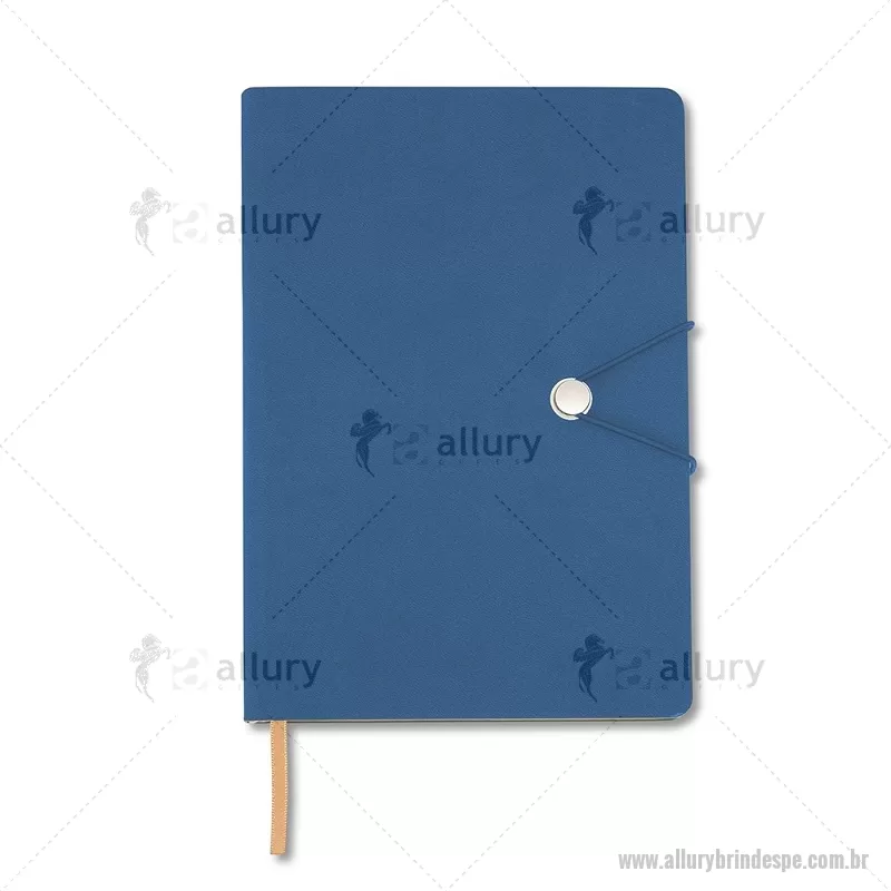 Caderneta com fecho de pino e elástico de nylon para lacre. Capa em material sintético emborrachado, possui aproximadamente 96 folhas pardas pautadas e marca página em cetim. Tamanho total aproximado (CxL): 21 cm x 14,8 cm x 2,2 cm Peso aproximado (g): 302 - - ALLPEBLC220