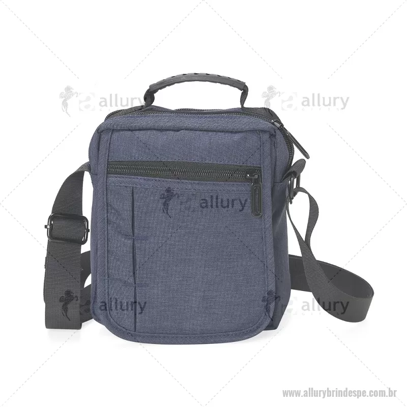 Bolsa de ombro em nylon com quatro compartimentos. Possui quatro compartimentos e uma alça de uso transversal.