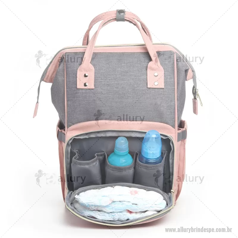 Mochila funcional em poliéster. Parte externa: Compartimento com divisórias internas, alça para encaixe para carrinho de bebê, 2 bolsos laterais, bolso frontal com divisórias internas com zíper, alça de mão, compartimento com zíper nas costas da mochila. Parte interna: Compartimento com seis divisórias, sem compartimento para notebook. Dimensão Produto: 14x40x48cm Peso do Produto: 0,780kg Capacidade: 26L - - ALLPEBOL026