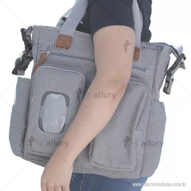 Bolsa multifuncional em poliéster com detalhes em PU. Possui 2 compartimentos laterais, 3 bolsos frontais com zíper, 1 na parte oposta com fechamento em velcro, incluindo um específico para lenços umedecidos. Conta com alças de ombro e de mão com acabamento em PU, além de interior espaçoso com divisórias e fechamento em zíper. Prática e organizada para o dia a dia. Dimensão Produto:39x42x18cm (AxLxP) Peso do Produto: 868 gramas - - ALLPEBOL036