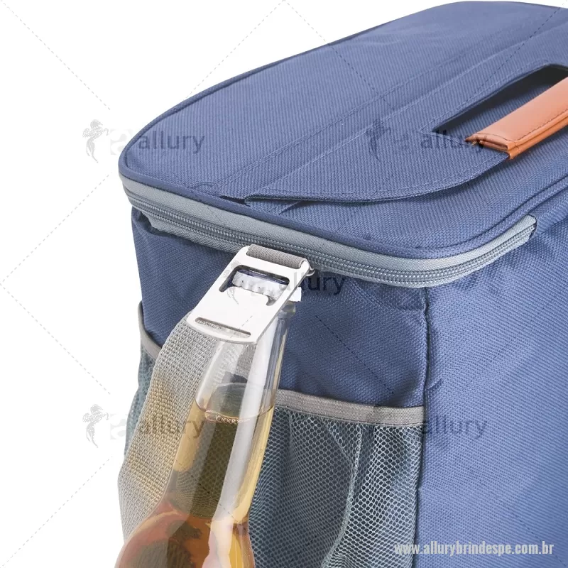 Bolsa térmica de 11 litros feita em Oxford impermeável, com detalhes em couro sintético e revestimento interno em PEVA para melhor conservação da temperatura. Possui bolso frontal aberto, dois bolsos laterais em tela, alça de mão, alça transversal ajustável e abridor de garrafas em inox acoplado na lateral. Prática e ideal para uso diário. - - ALLPEBT098