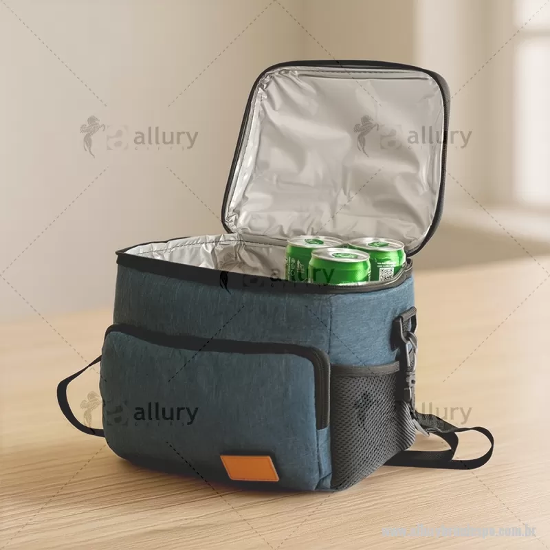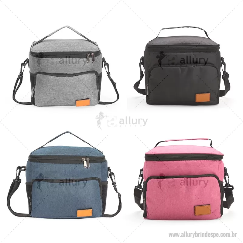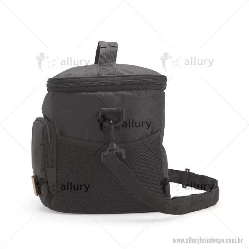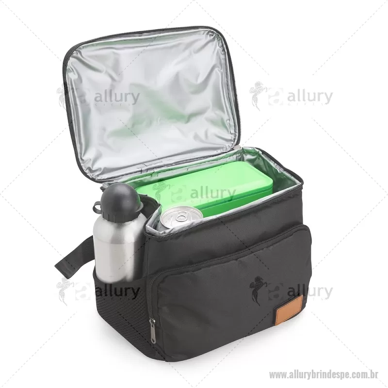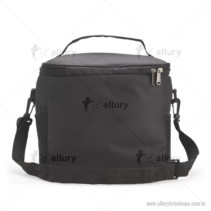 Bolsa térmica de 11 litros feita em Oxford resistente à água, com revestimento interno em PEVA atóxico e fechamento em zíper. Possui bolso frontal com plaquinha em couro sintético, dois bolsos laterais em tela, alça superior em nylon e alça transversal removível e ajustável. Prática e funcional para uso diário. - - ALLPEBT101