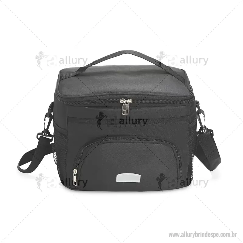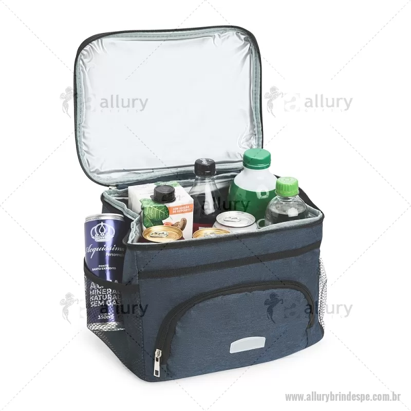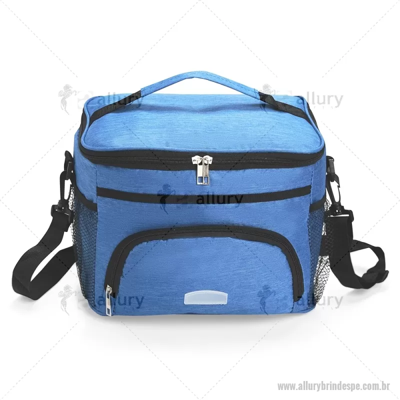 Bolsa térmica de 10 litros feita em poliéster resistente à água, com revestimento interno em PVC laminado. Conta com bolso frontal com zíper, dois bolsos laterais em tela, alça superior fixa e alça transversal removível. Prática e ideal para levar alimentos e bebidas no dia a dia. - - ALLPEBT103