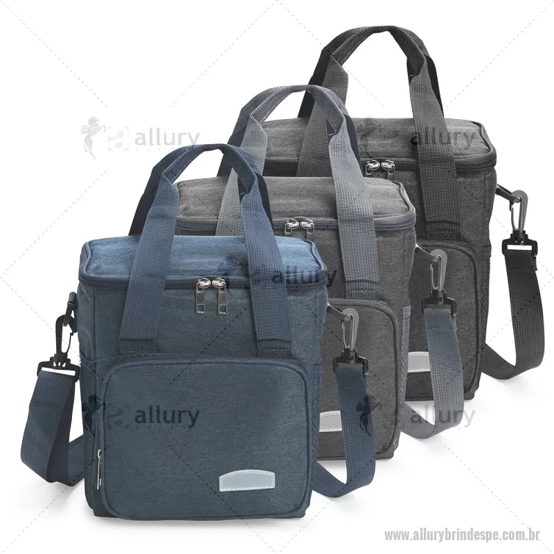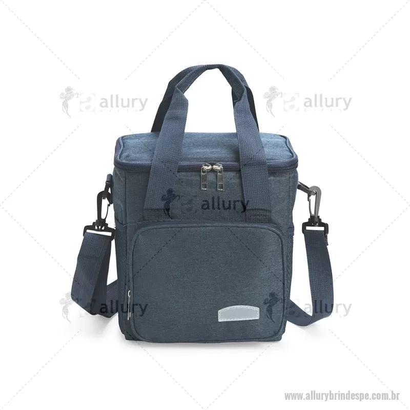 Bolsa térmica de 11 litros feita em Oxford resistente à água, com revestimento interno em PEVA e tampa isolada com folha de alumínio. Possui bolso frontal com zíper, dois bolsos laterais em tela, alças laterais fixas e alça transversal removível. Ideal para manter alimentos e bebidas na temperatura por mais tempo. - - ALLPEBT106
