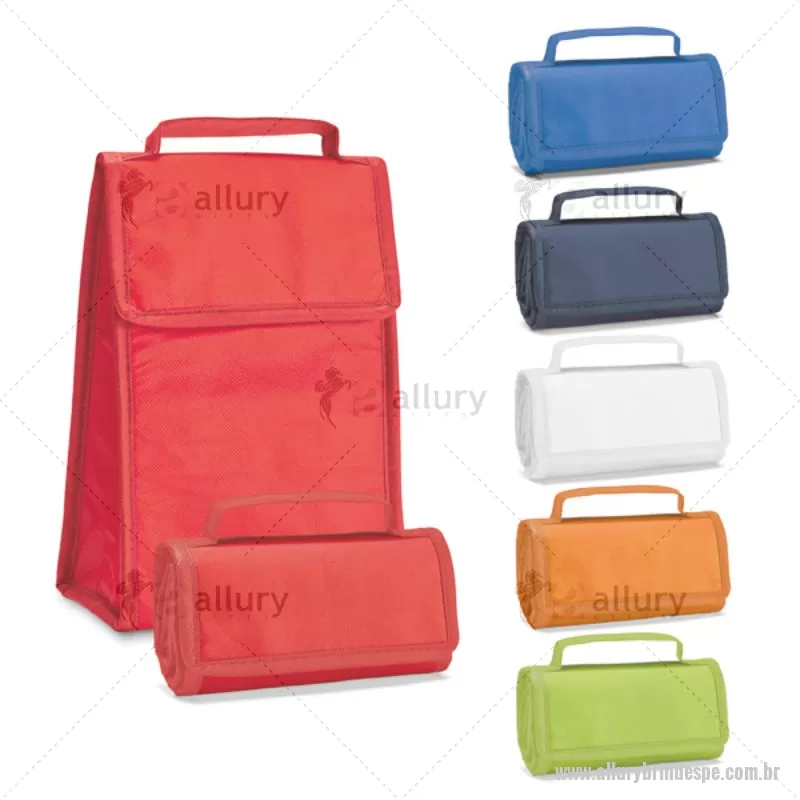 Bolsa Térmica Dobrável Personalizada Confeccionada em Non-Woven: 80g/m² (TNT); Fechamento superior em velcro; Capacidade de até 03 litros; 02 Alças de ombro reguláveis; 01 Alça simples de mão; Revestimento térmico na parte interna. Dimensões: Dobrada L:17cm x A:9,5cm x P:0,4cm Aberta L:17cm x A:26,5cm x P:11 cm - - ALLPEBT024