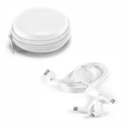 Cabo USB retrátil com suporte para celular. Contém entradas Lightning/iPhone, V8/Android, Tipo-C/Android e 4 diferentes ajustes do comprimento dos cabos. Suporte de frente lisa e com alça para transporte em couro sintético. - - ALLPETEC509
