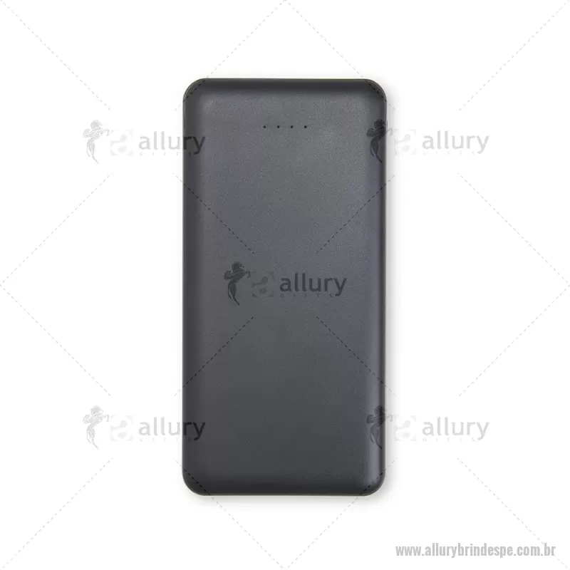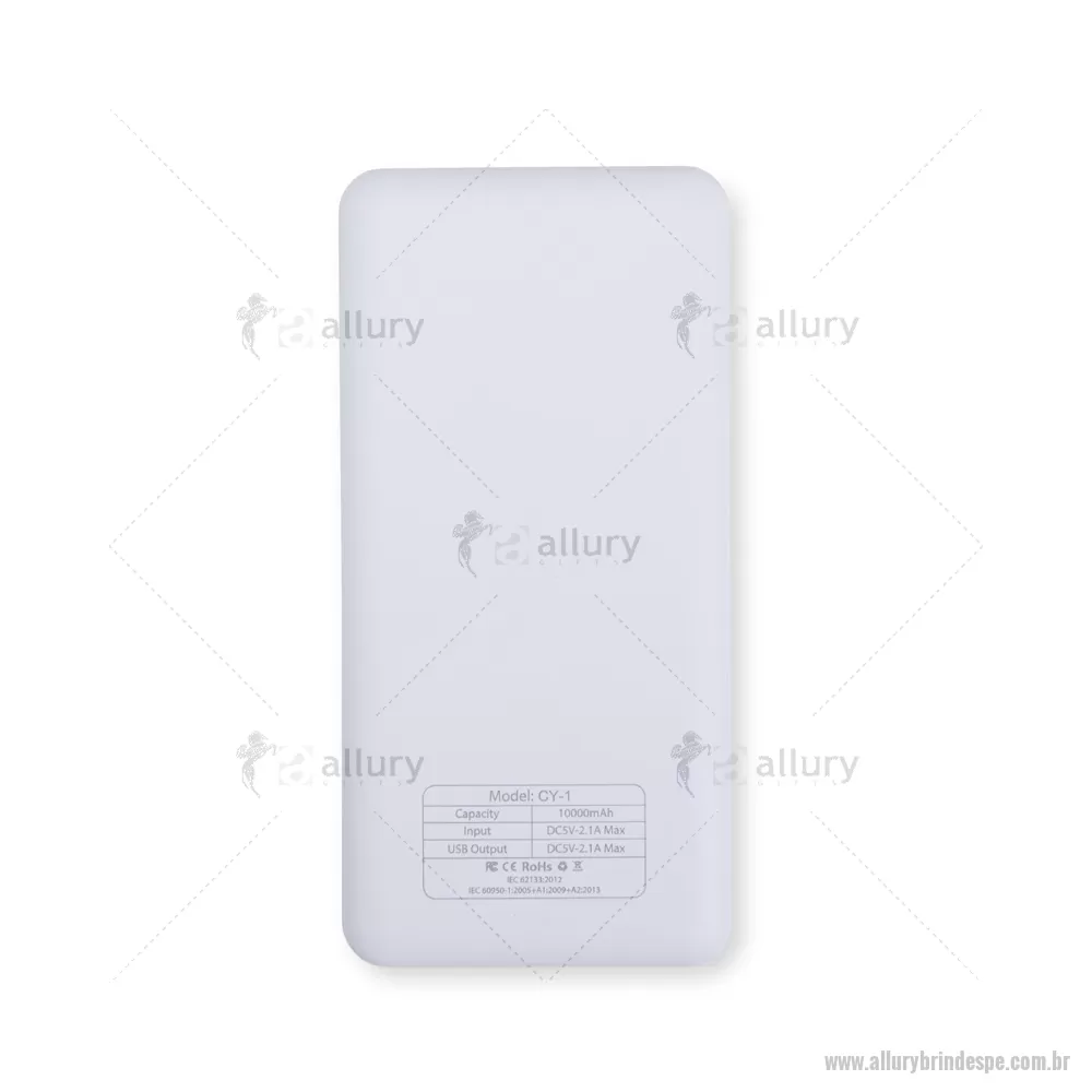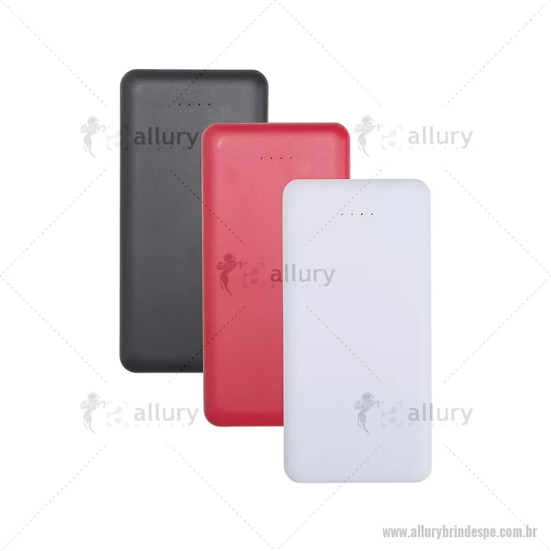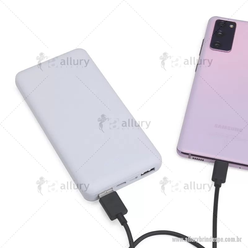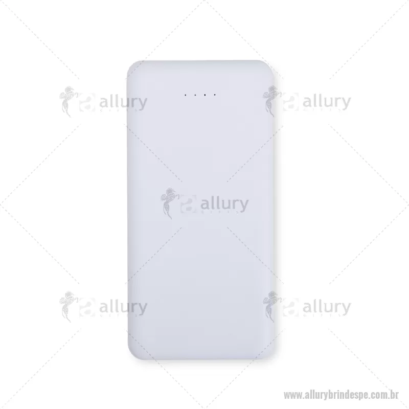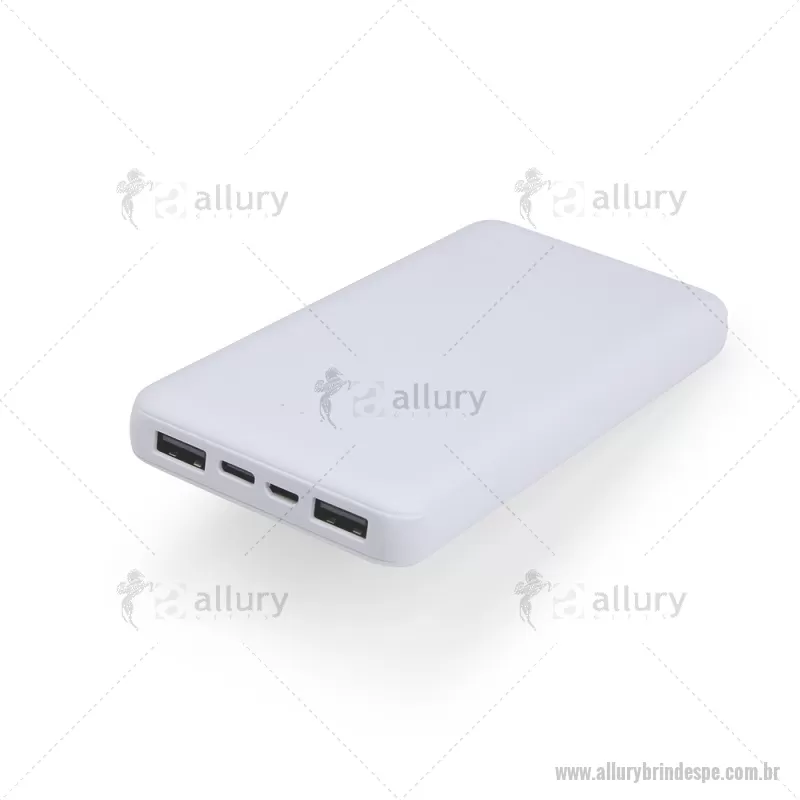 Power Bank 10.000mAh com Indicador LED Descrição: Power bank com estrutura em plástico com potência de 10.000mAh e quatro luzes de LED para indicar o status de carga do próprio carregador portátil. Possui quatro entradas diferentes: duas portas USB, uma porta Micro USB e outra USB-C. Altura : 14 cm x Espessura : 1,5 cm x Comprimento : 7 cm Peso aproximado (g): 243 - - ALLPETEC531