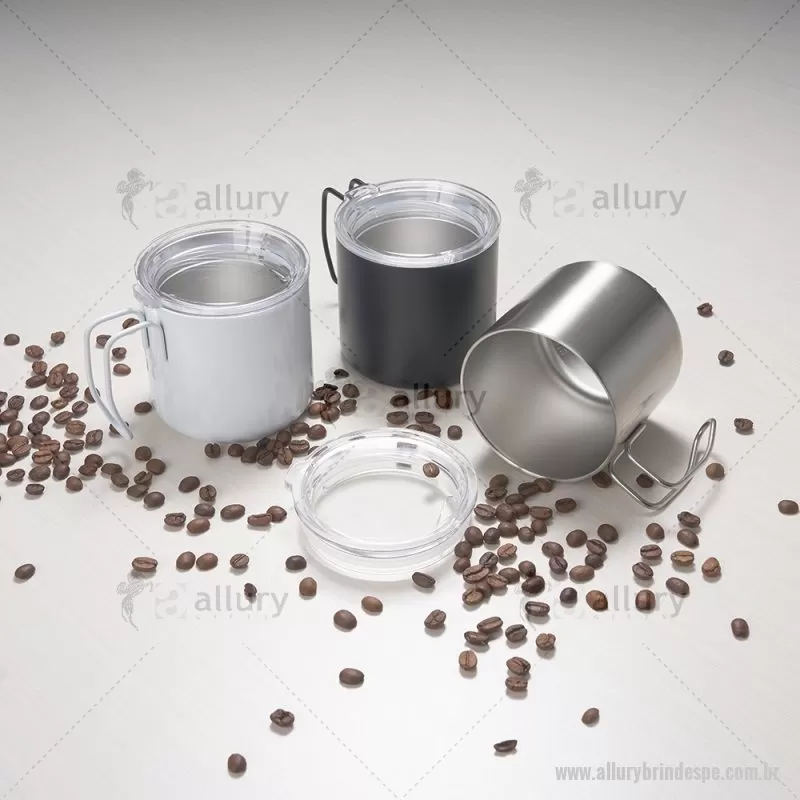 Caneca 350 ml parede dupla em Inox, com pegador de inox, contém tampa transparente com compartimento para beber. - - ALLPECAN058