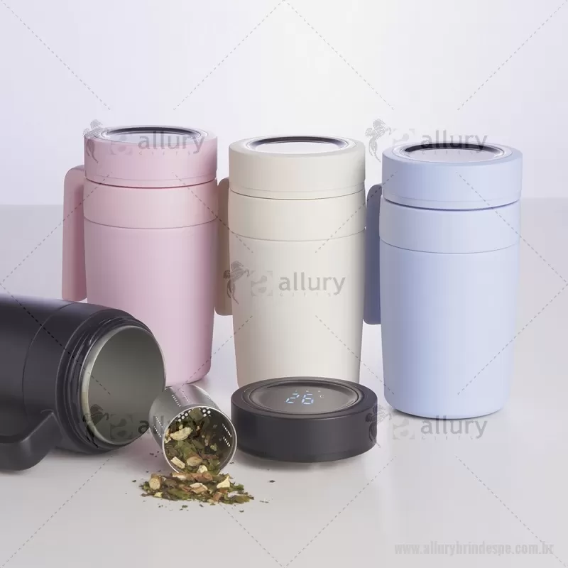 Caneca Térmica inox 500ml com infusor, e display LED com termômetro digital na tampa para indicar a temperatura do líquido.