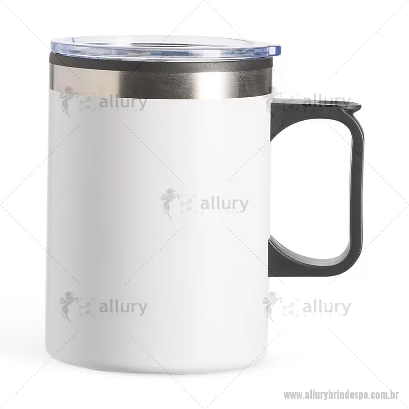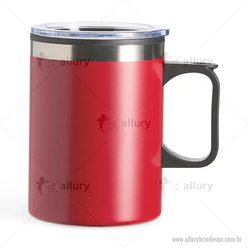 Caneca de 375 ml com interior plástico e revestimento externo em inox, que evita o aquecimento das mãos. Possui tampa com bocal e trava de segurança, além de base emborrachada antiderrapante. Prática e ideal para o dia a dia. - - ALLPECAN098