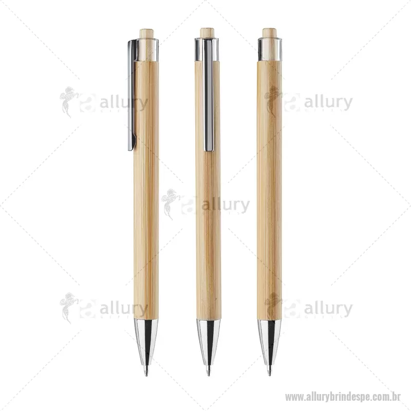 Caneta com corpo em bambu, acionador em bambu com detalhe plástico, ponteira e clipe cromado. Dimensão Produto: 14xø1cm Peso do Produto: 0,007kg - - ALLPECPECO072
