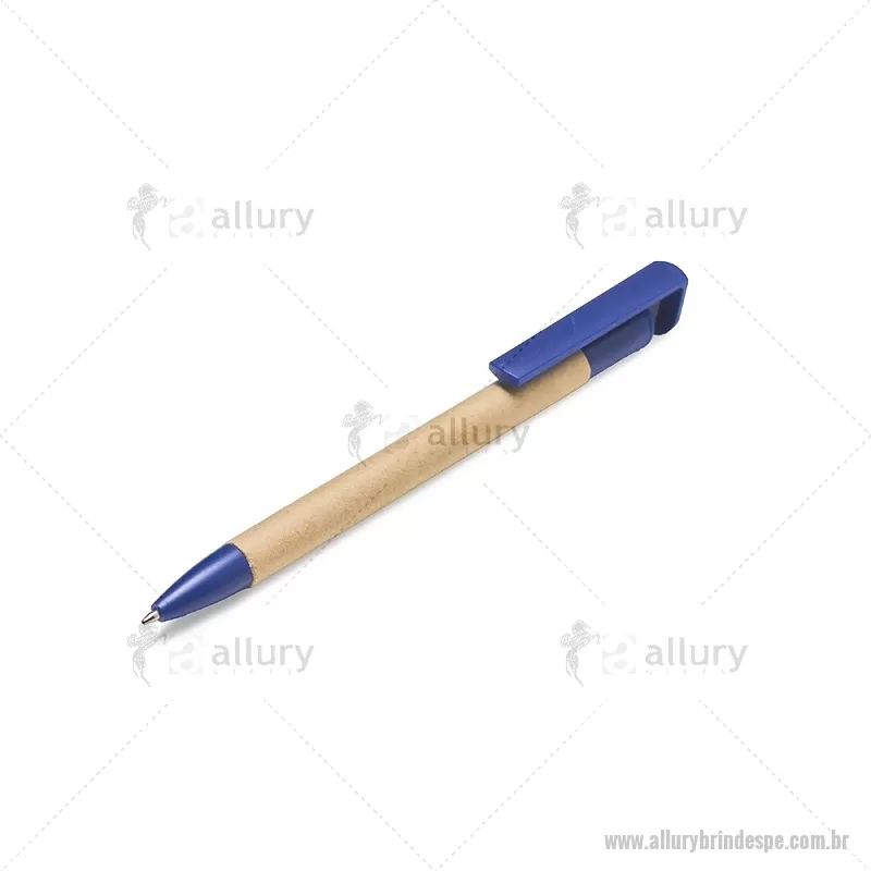 Caneta de papelão com suporte para celular, carga esferográfica azul 0,8 mm e acionamento por clique. - - ALLPECPECO064