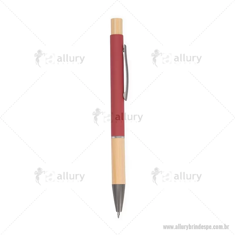 Caneta esferográfica azul 1,0 mm com corpo metálico, detalhes em bambu e acionamento por clique. Leve e confortável, proporciona escrita precisa no dia a dia. - - ALLPECMT296