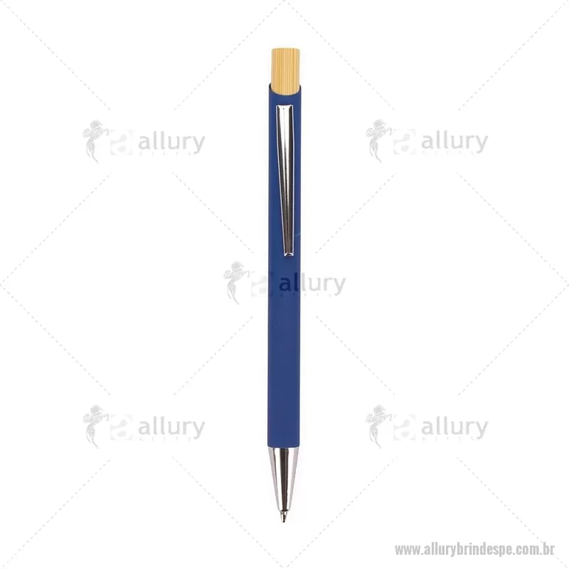 Caneta esferográfica azul 1,0 mm com corpo metálico e acionamento por clique em bambu. Oferece escrita leve, confortável e precisa para o uso diário. - - ALLPECMT297