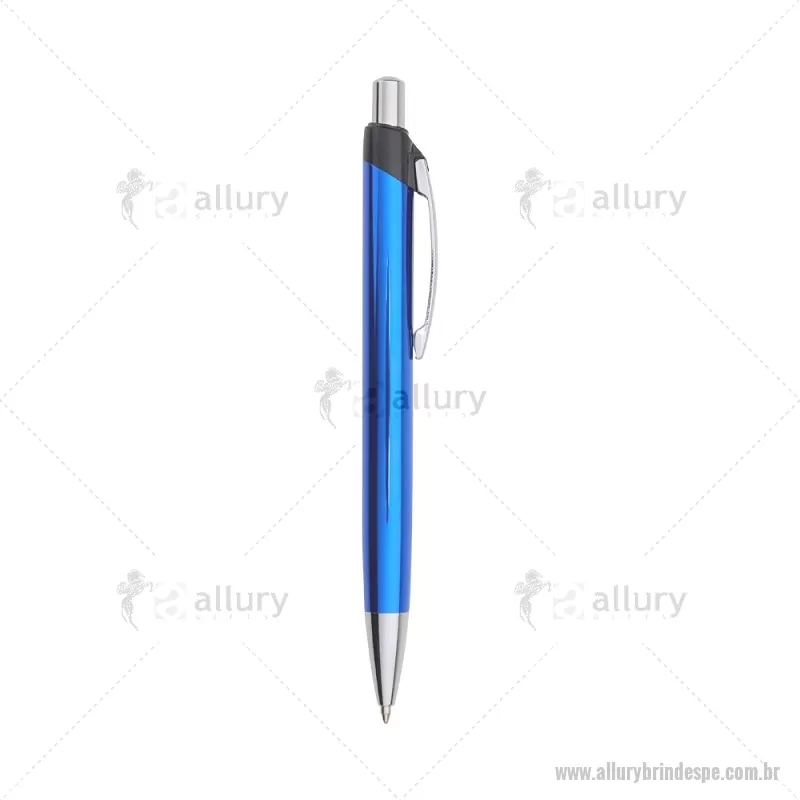 Caneta metálica com acionamento por clique, carga esferográfica azul 1,0mm. - - ALLPECMT257