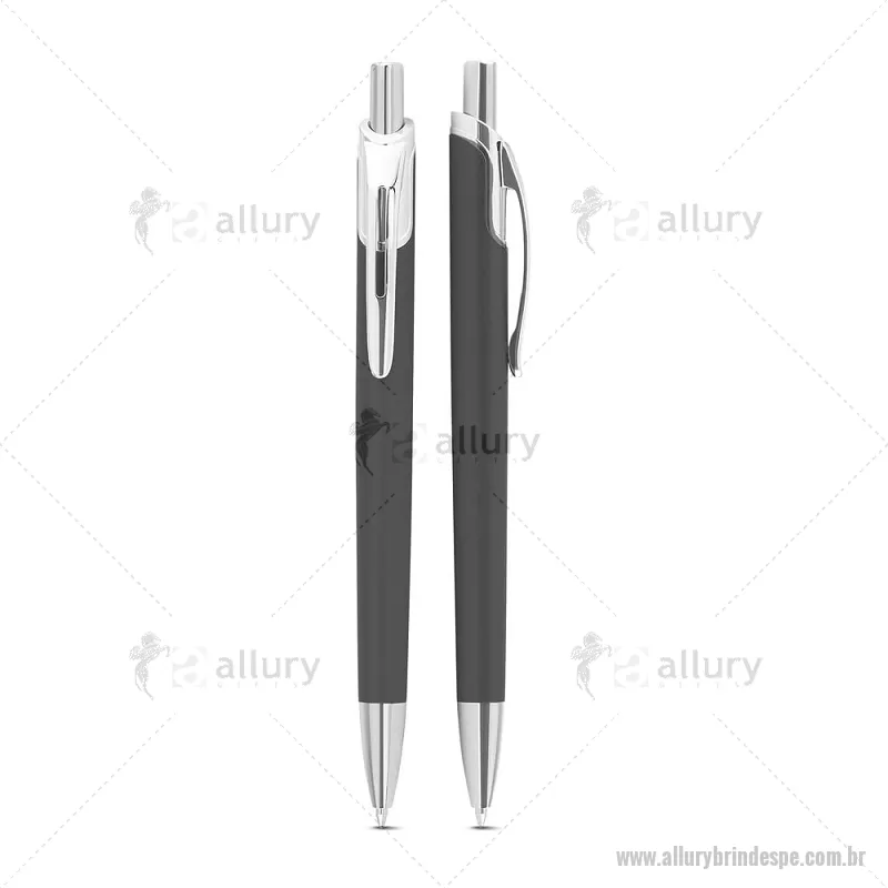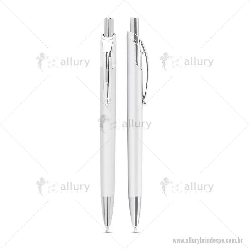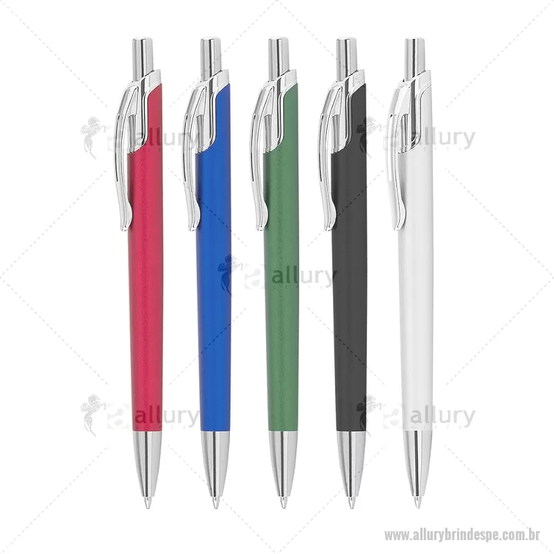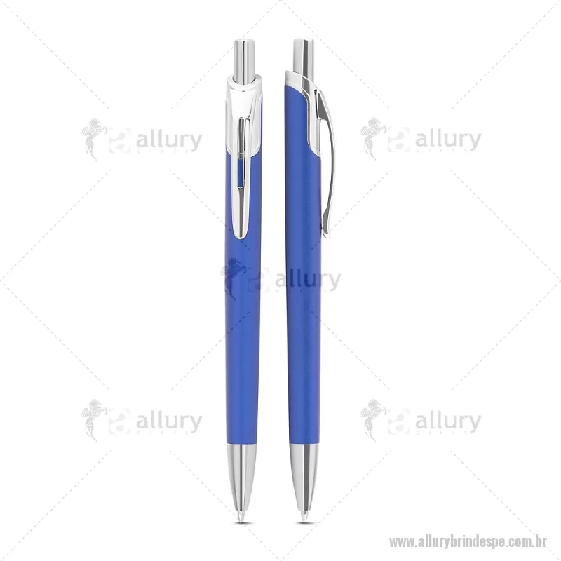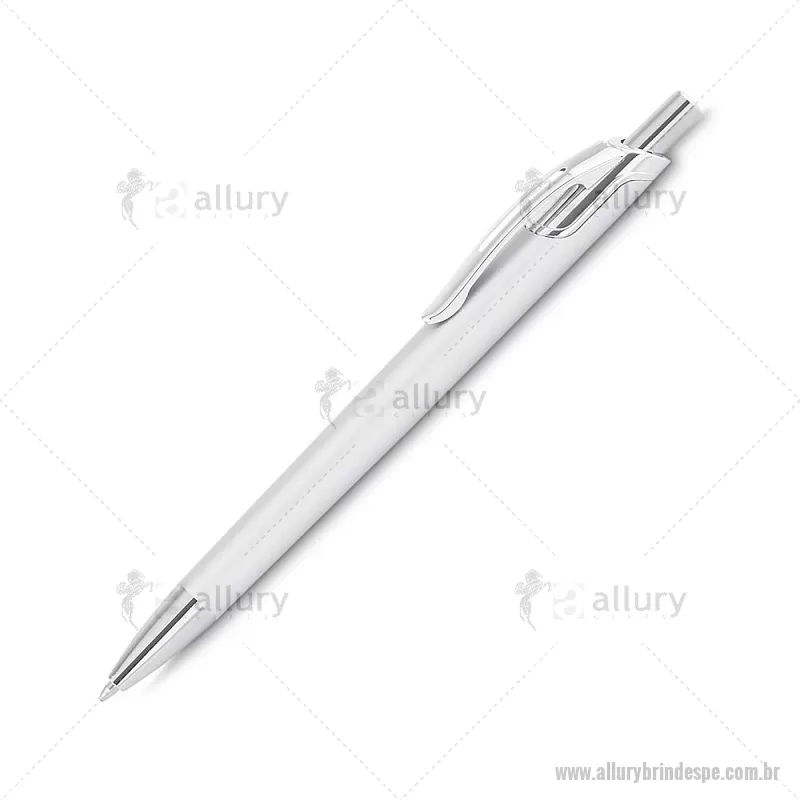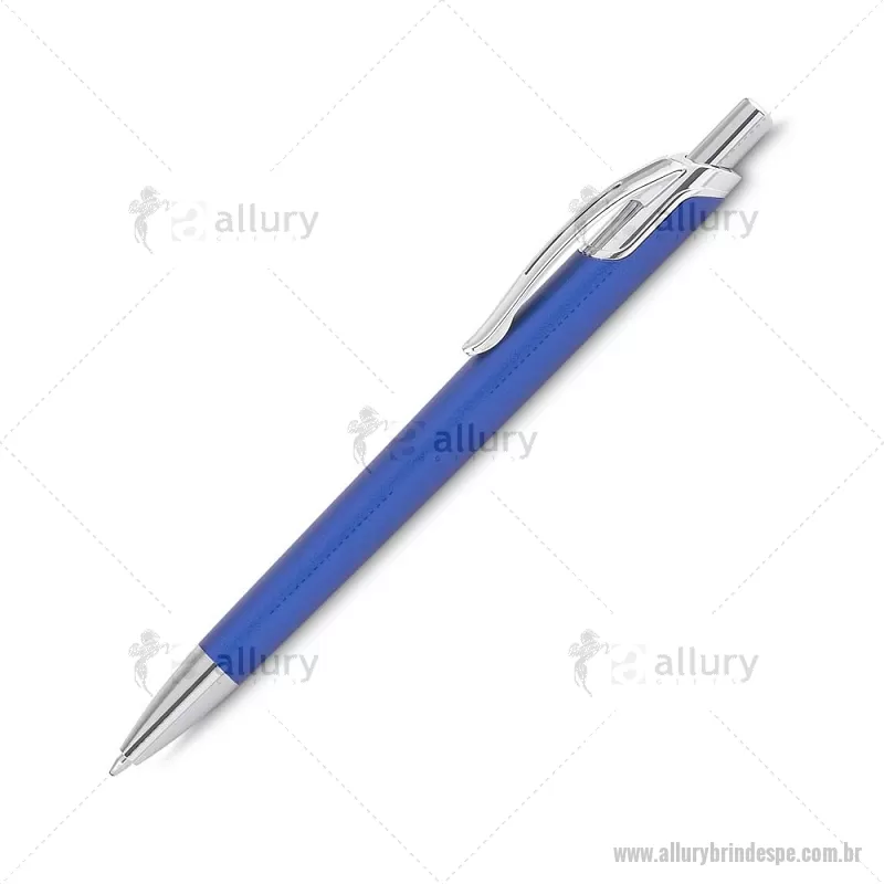 Caneta com corpo em alumínio reciclado, acionador e clipe cromado, escrita esferográfica em azul. Peso do Produto: 0,016kg Dimensão do Produto: 14ø1cm - - ALLPECMT305