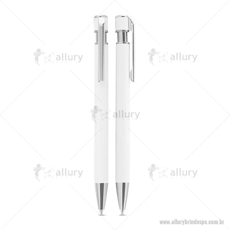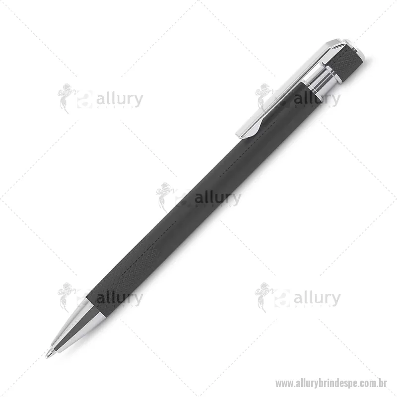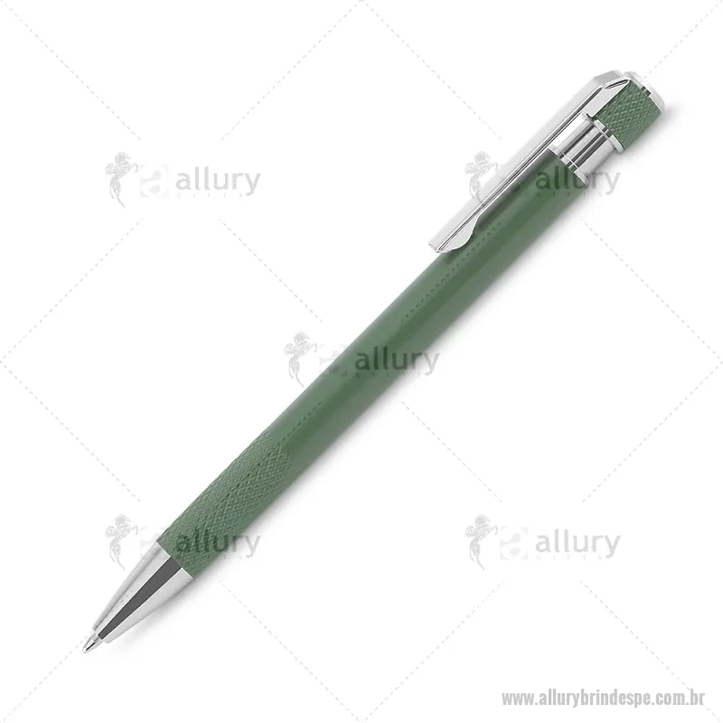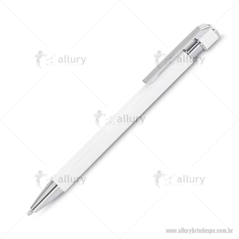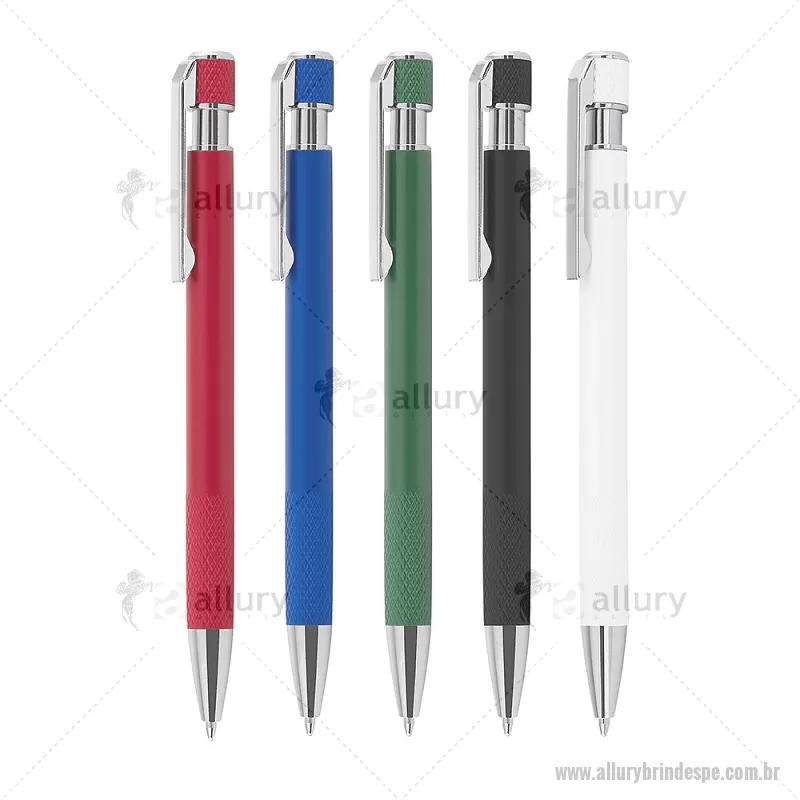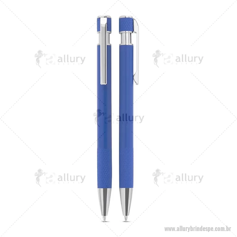 Caneta esferográfica com corpo em alumínio reciclado, acionador e clipe cromado, escrita em tinta azul. Refil substituível tipo Parker. Peso do Produto: 0,016kg Dimensão do Produto: 13,6xø0,9cm - - ALLPECMT306