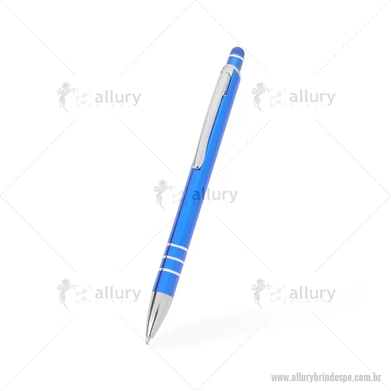 Caneta metálica com acionador touch, clipe metálico e ponteira plástica. Carga esferográfica azul 1.0mm e acionamento por clique. Largura : 1,4 cm x Comprimento : 14,4 cm Peso aproximado (g): 16 - - ALLPECMT289