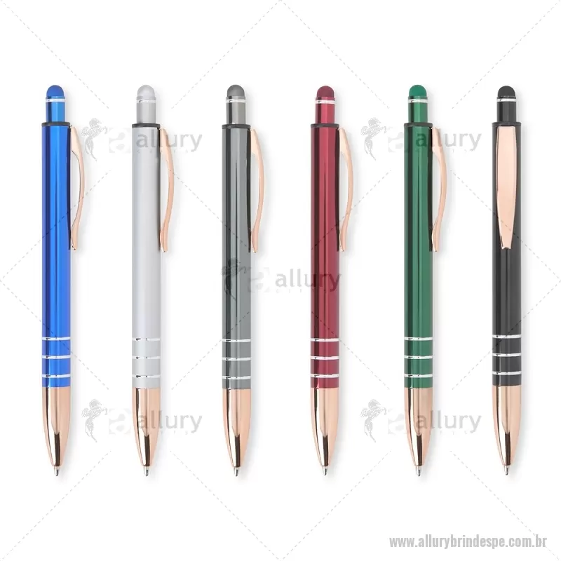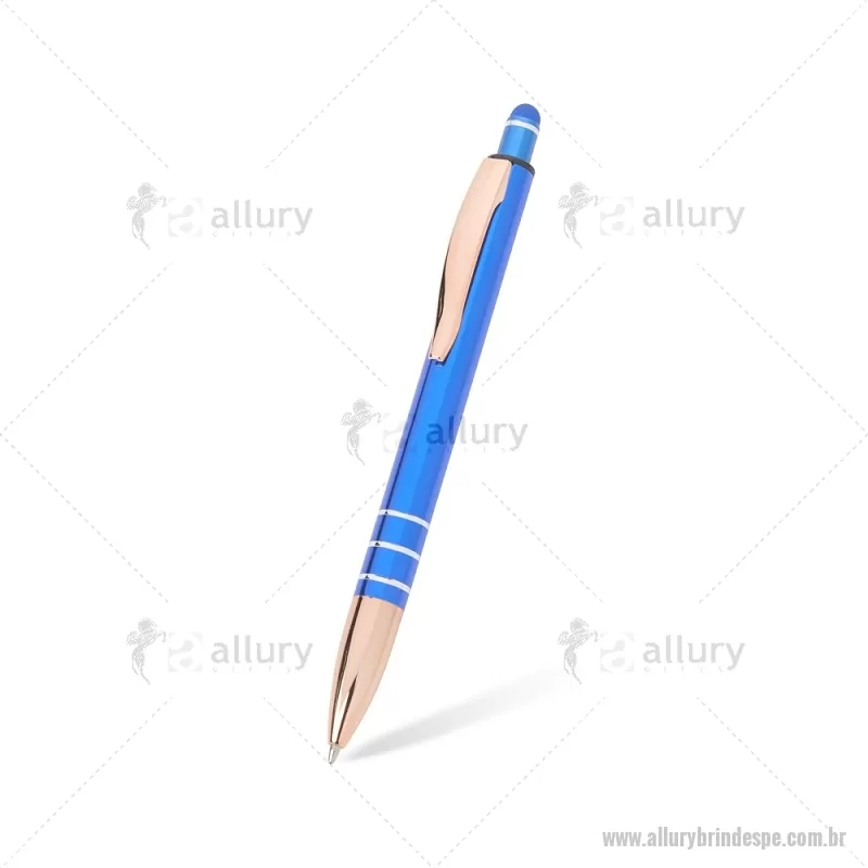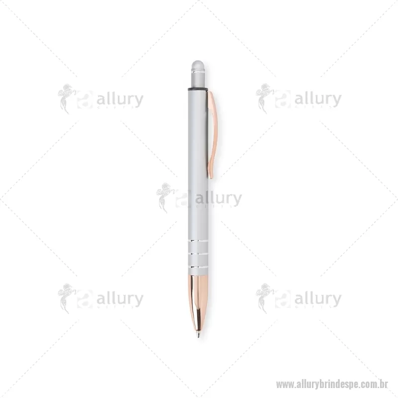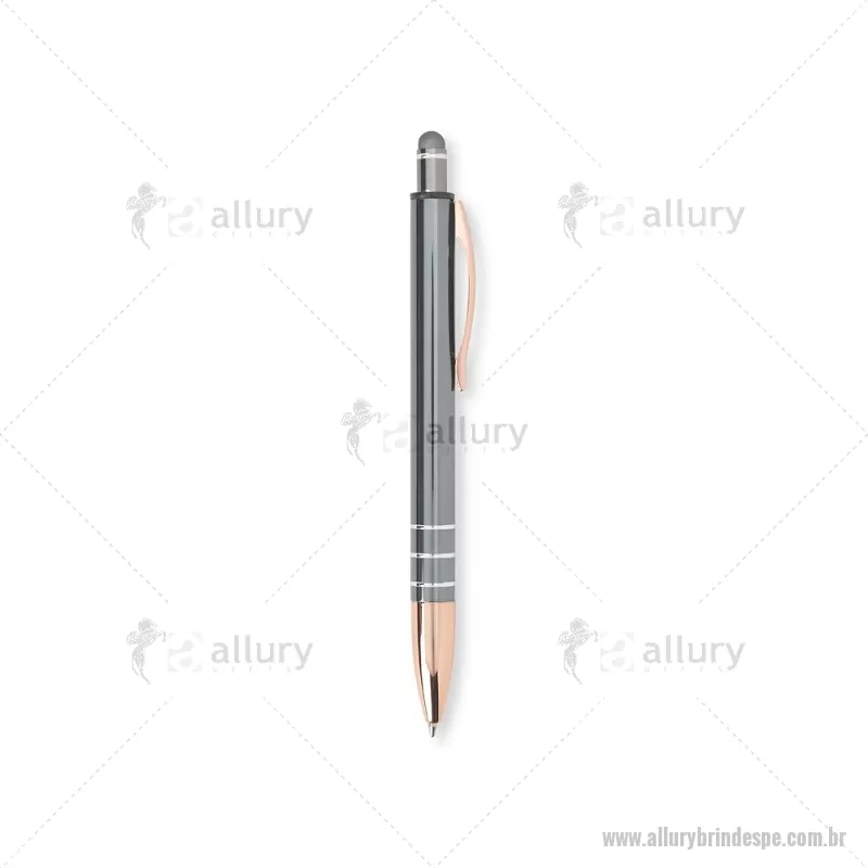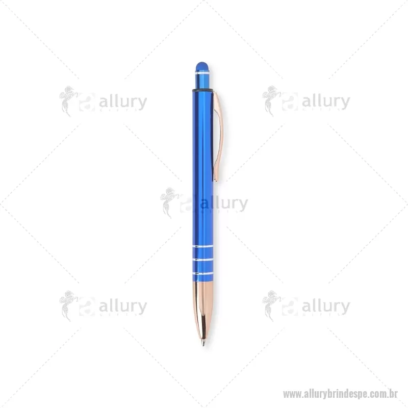 Caneta Metal Touch Caneta metálica com acionador touch, clipe metálico e ponteira plástica. Carga esferográfica azul 1.0mm e acionamento por clique. Largura : 1,6 cm x Comprimento : 14,4 cm Peso aproximado (g): 17 - - ALLPECMT291