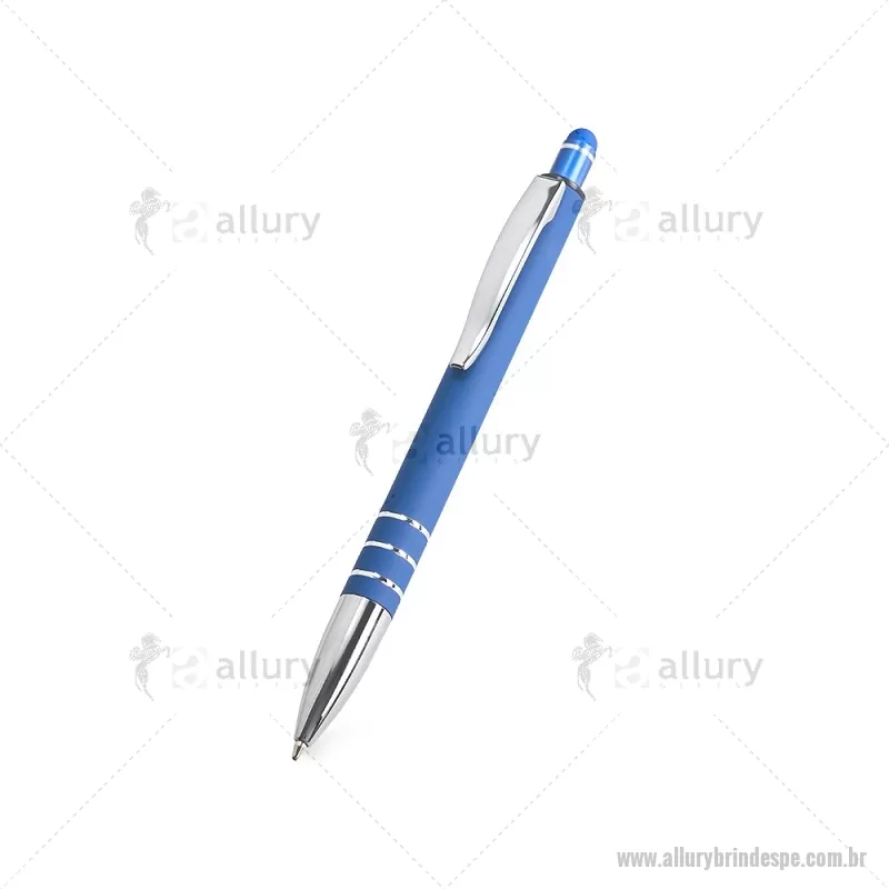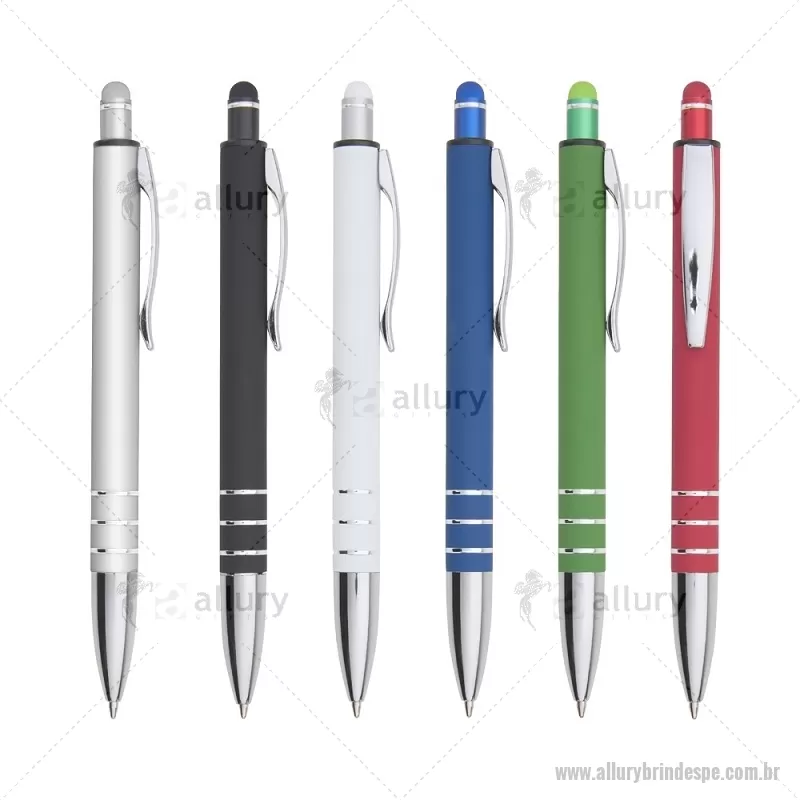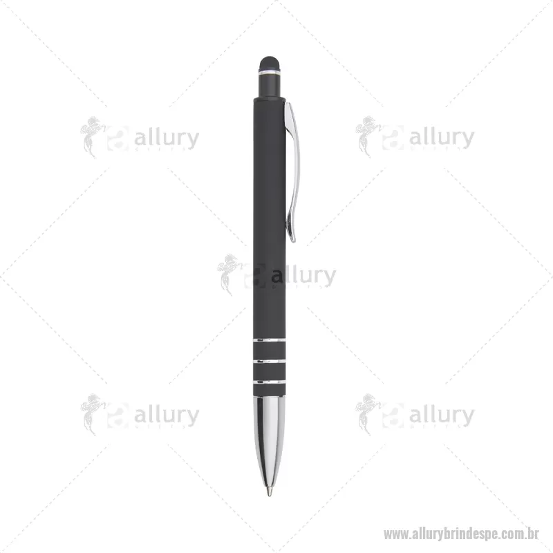 Caneta Metal Touch Caneta metálica touchscreen com acabamento emborrachado, acionamento por clique e carga esferográfica azul 1.0mm. Altura : 14,4 cm x Largura : 1,6 cm Peso aproximado (g): 18 - - ALLPECMT292
